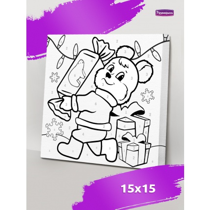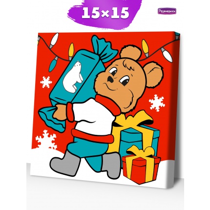 Р4239 Картина по номерам Новогодний мишка 15*15