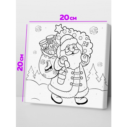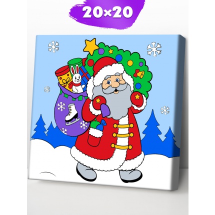 Р4242 Картина по номерам Дед Мороз с подарками 20х20