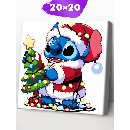 Р4257 Картина по номерам Стич с ёлочкой 20*20