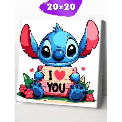 Р4262 Картина по номерам Стич I Love You 20*20