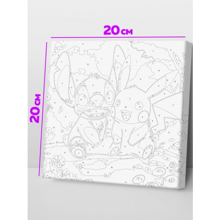Р4254 Картина по номерам Стич и Пикачу 20*20