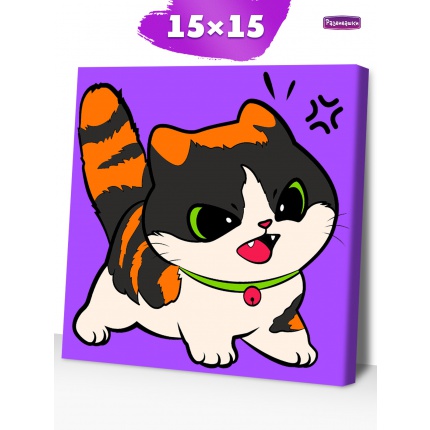Р4041 Картина по номерам Сердитый котёнок 15х15 quantity