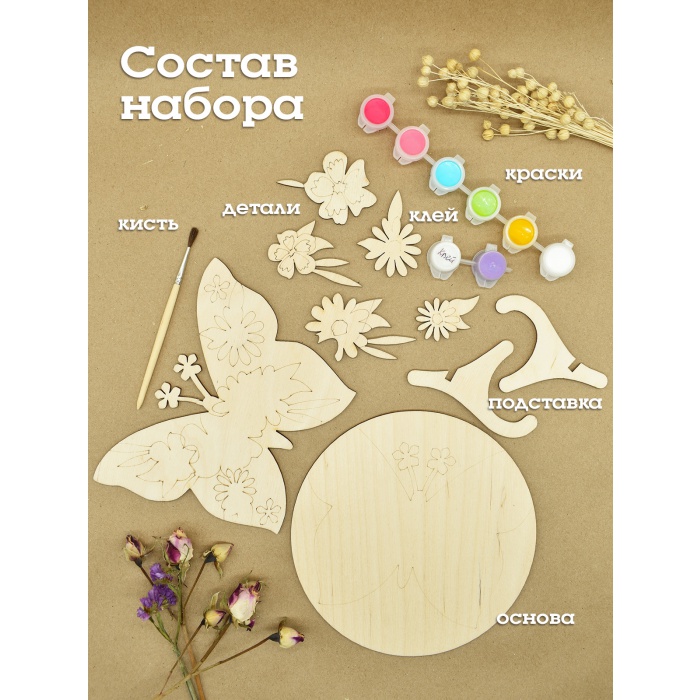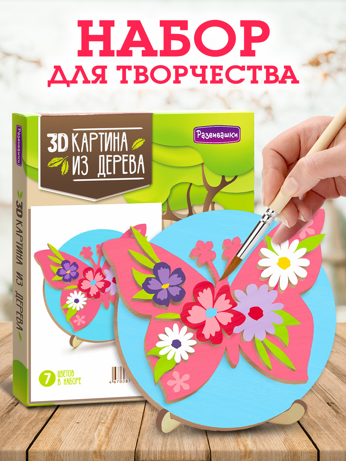 Home Раскраски по дереву 3D картины из дерева М408 3D Картина Цветочная бабочка