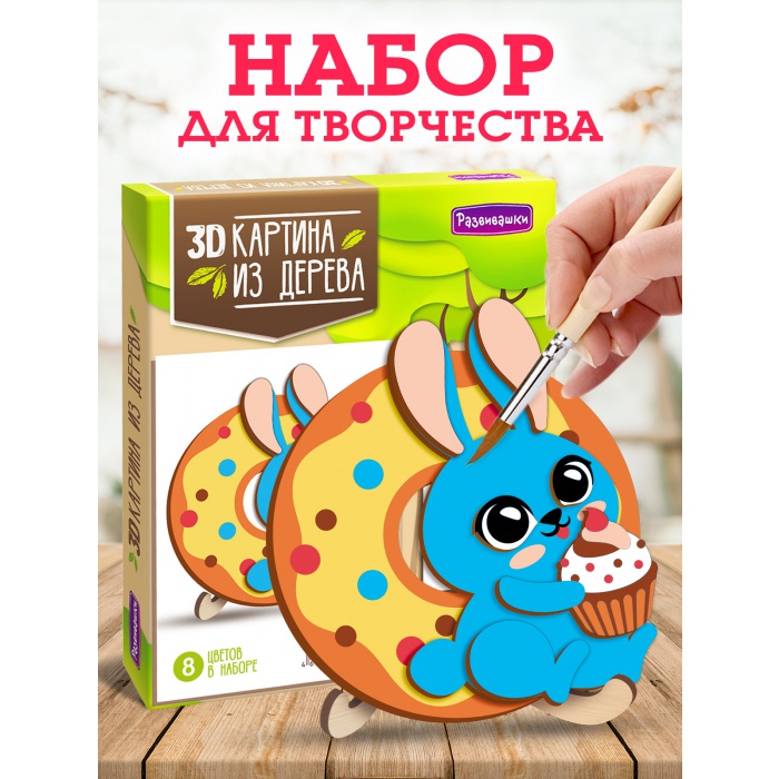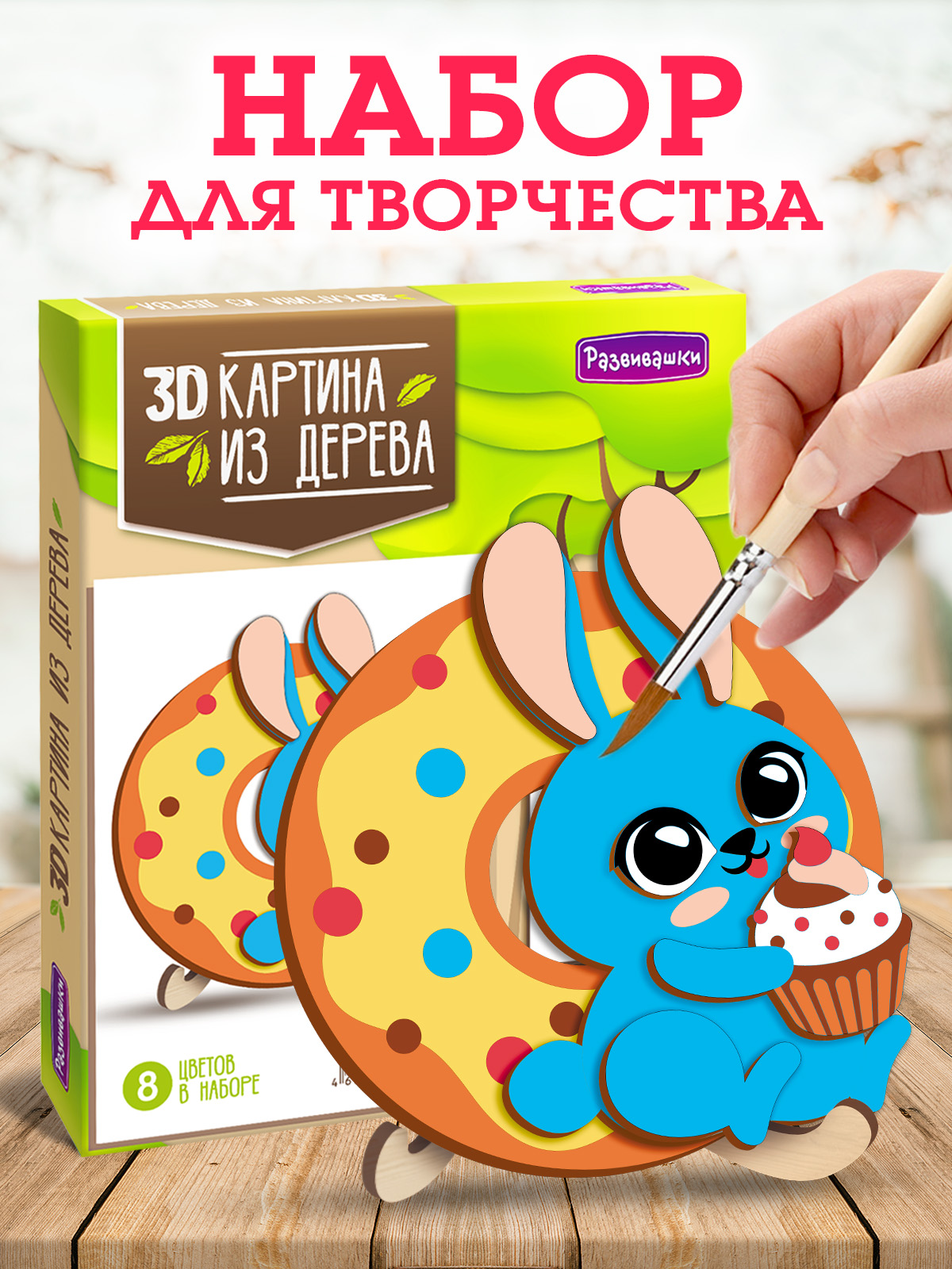 Home Раскраски по дереву 3D картины из дерева М422 3D Картина Кролик с кексом, 1/26
