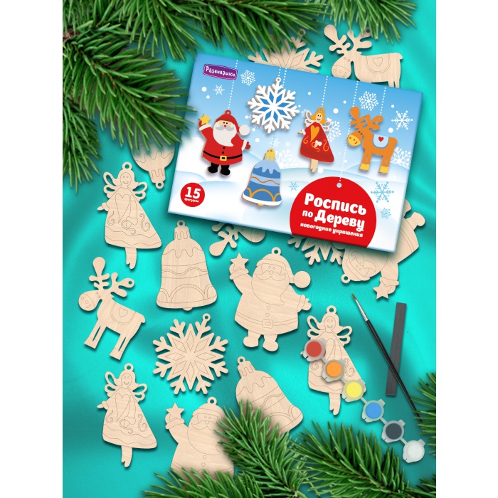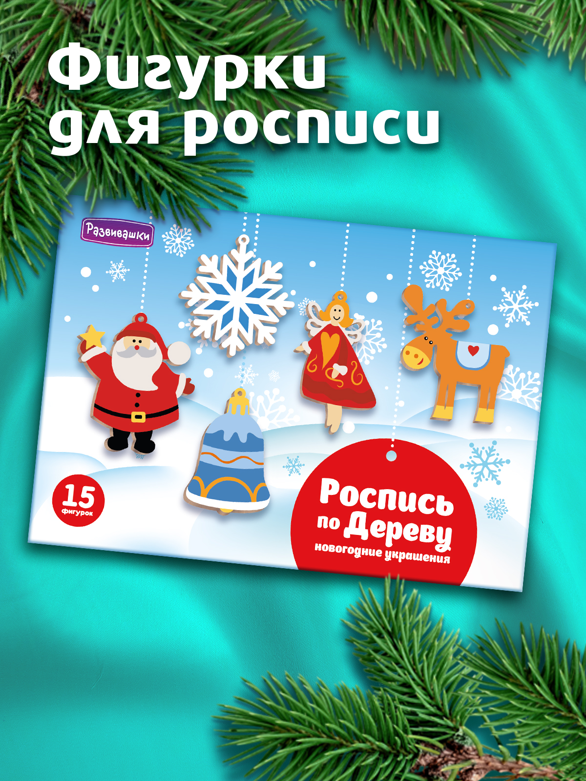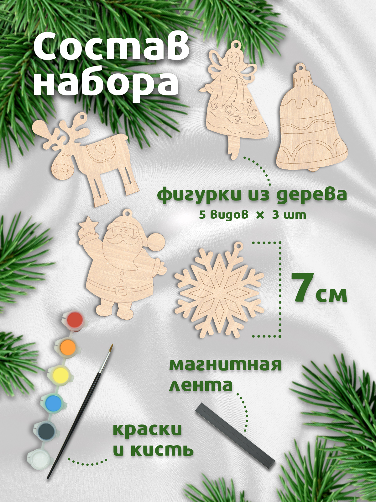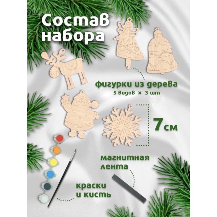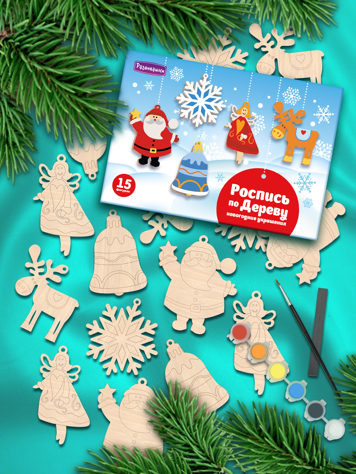 Набор для творчества Роспись по дереву. Набор можно использовать для создания подвесок для елки, гирлянды, магнитов, брелков или просто уникального подарка своим близким.