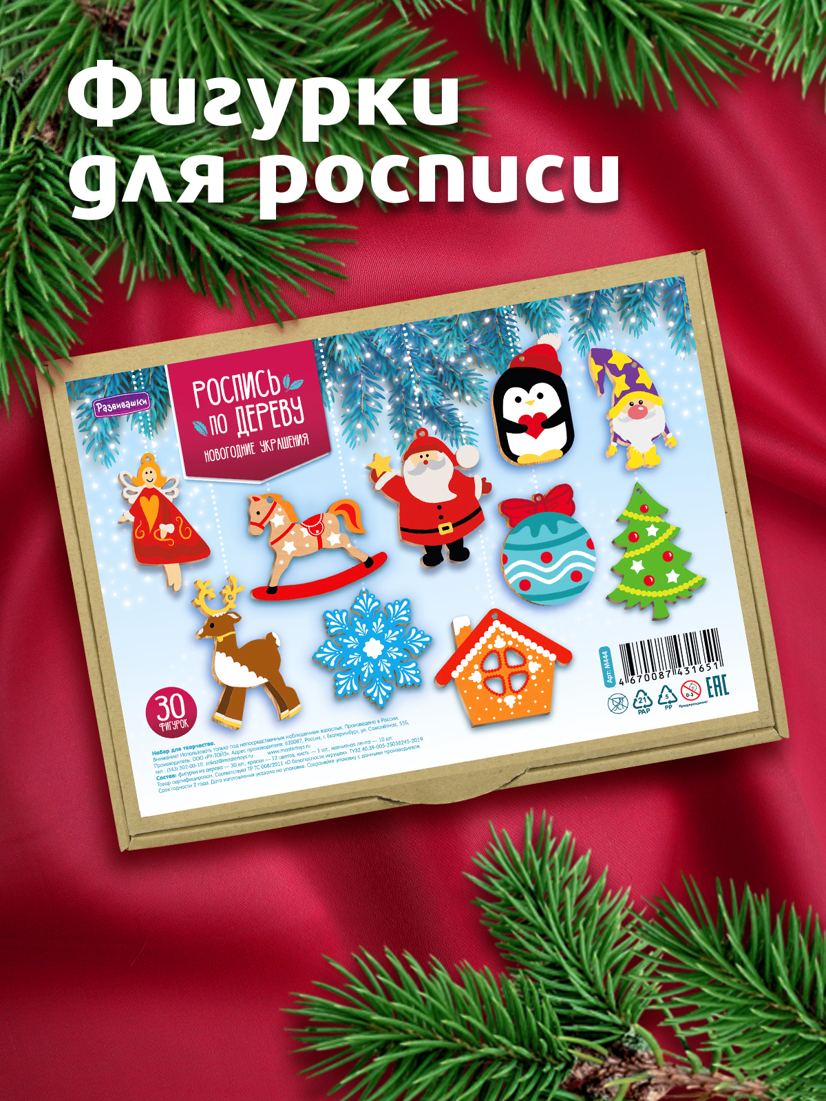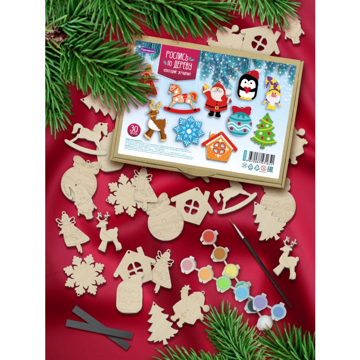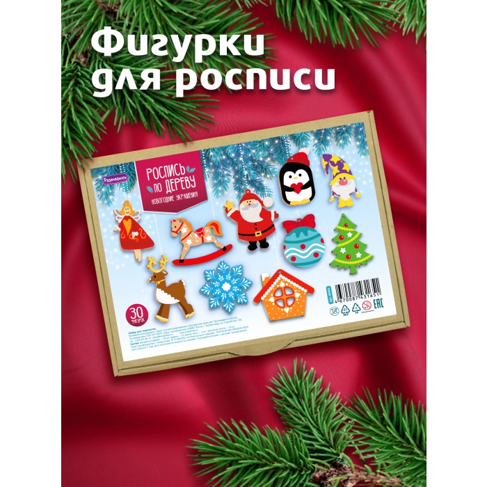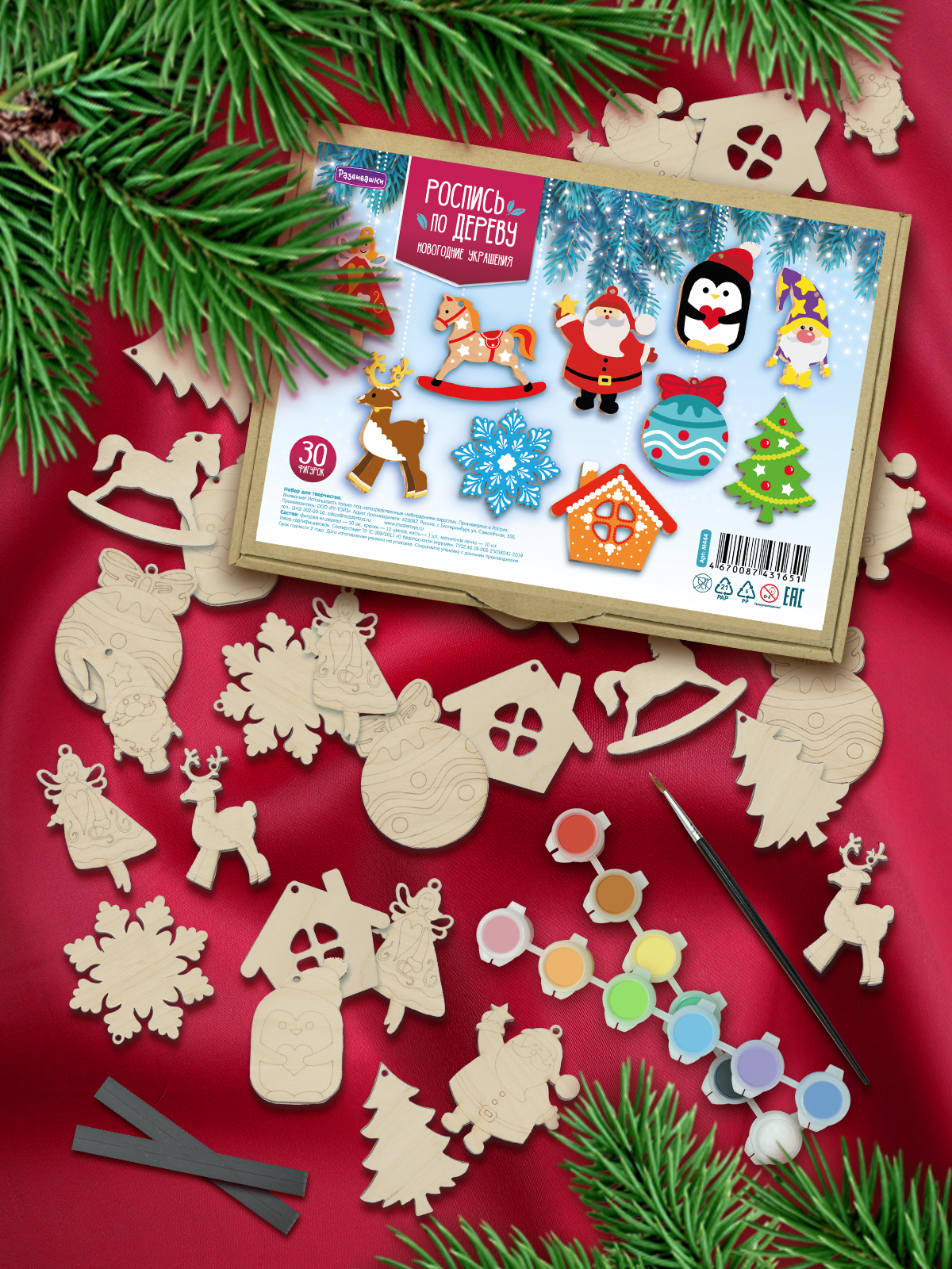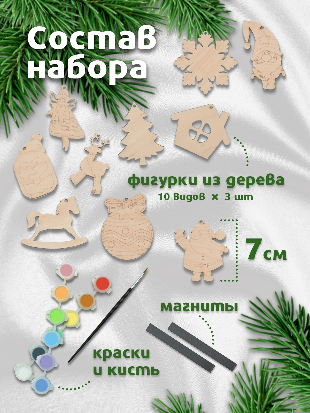 Home Раскраски по дереву Наборы для росписи фигурок М444 Роспись по дереву Набор 30 фигурок «Украшения» + МАГНИТЫ