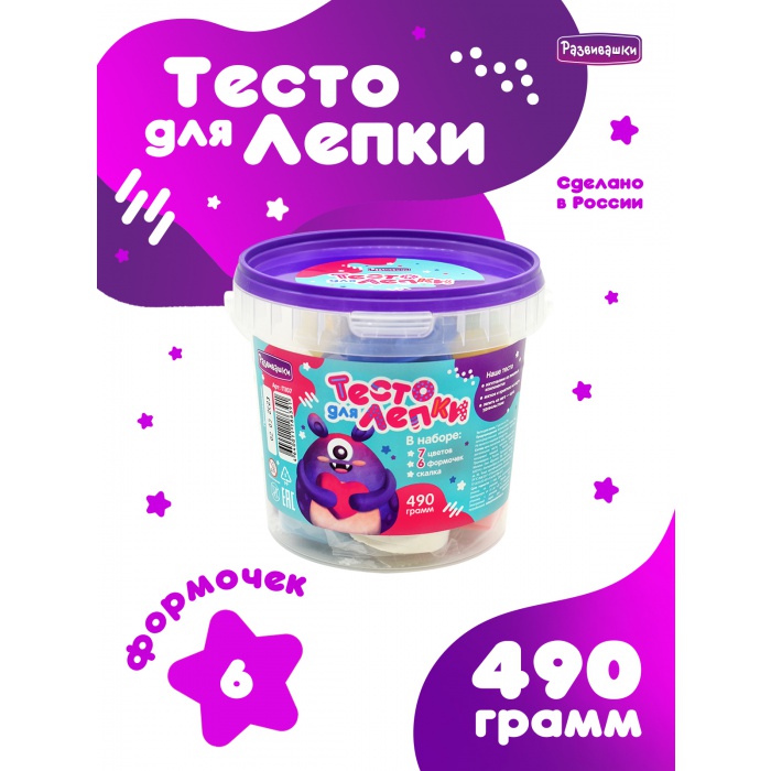 П117 Тесто для лепки, тесто 450 гр, 18 цветов, 6 форм, скалка, 1/20