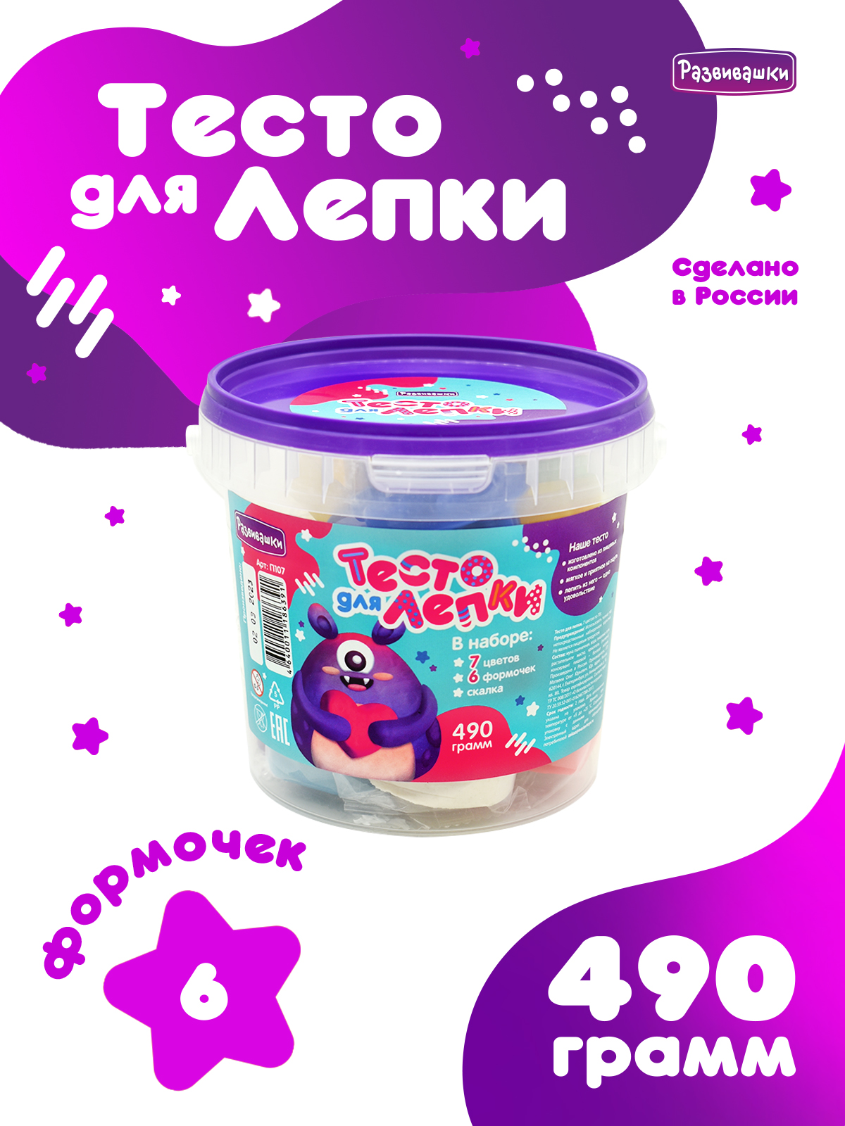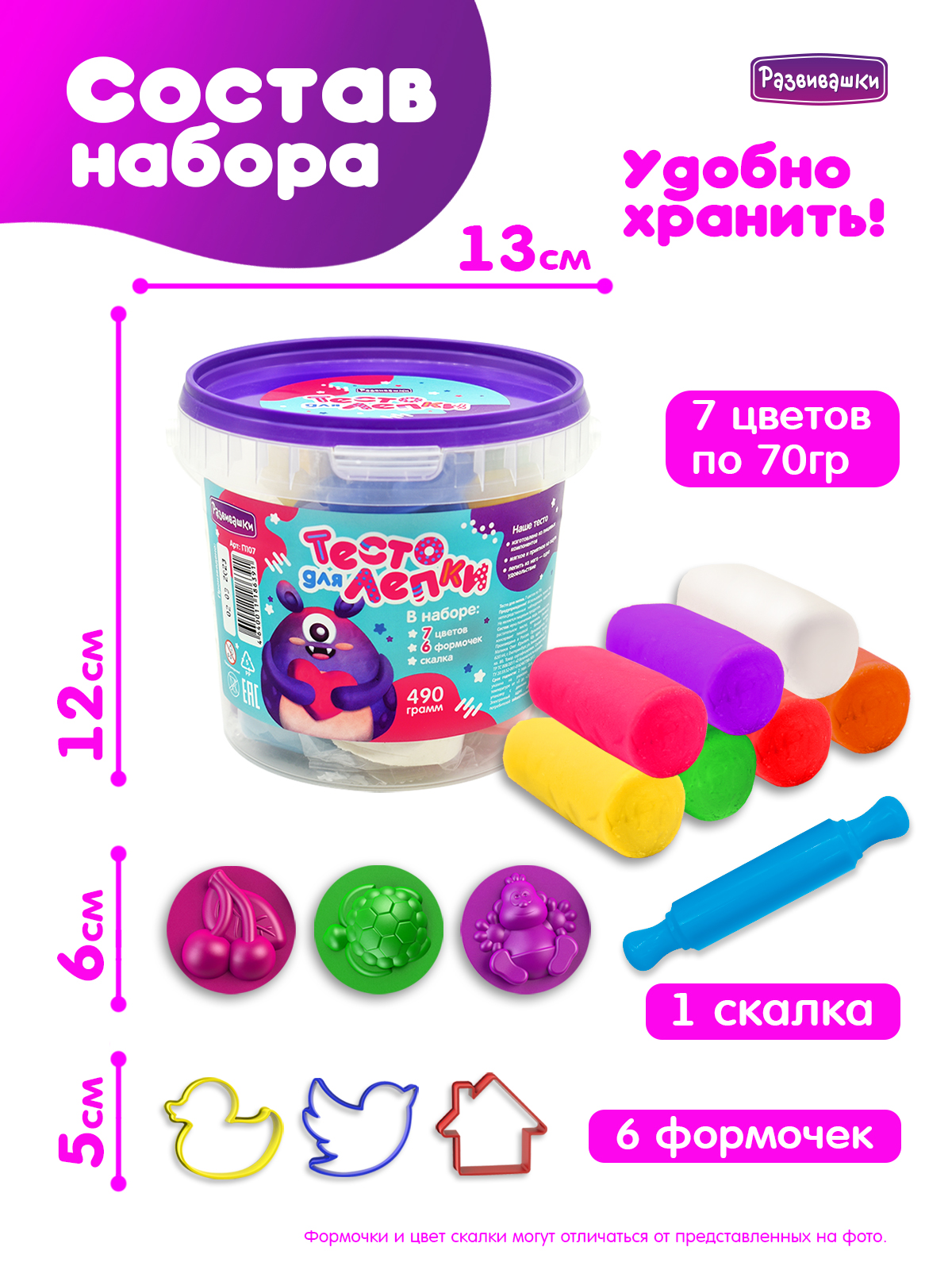 П107 Тесто для лепки 7 цветов по 70гр + 6 формочек, скалка в ведре quantity
