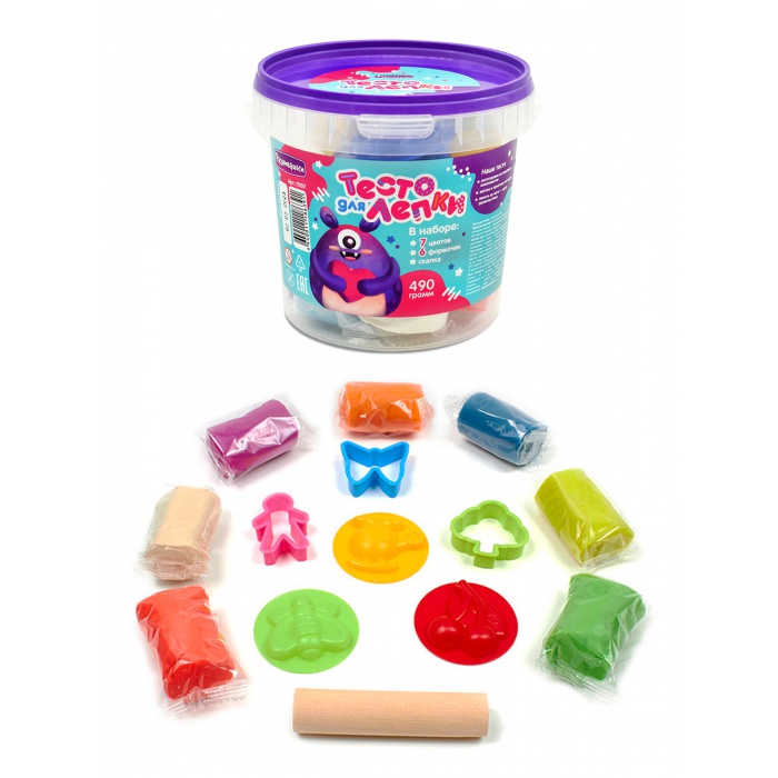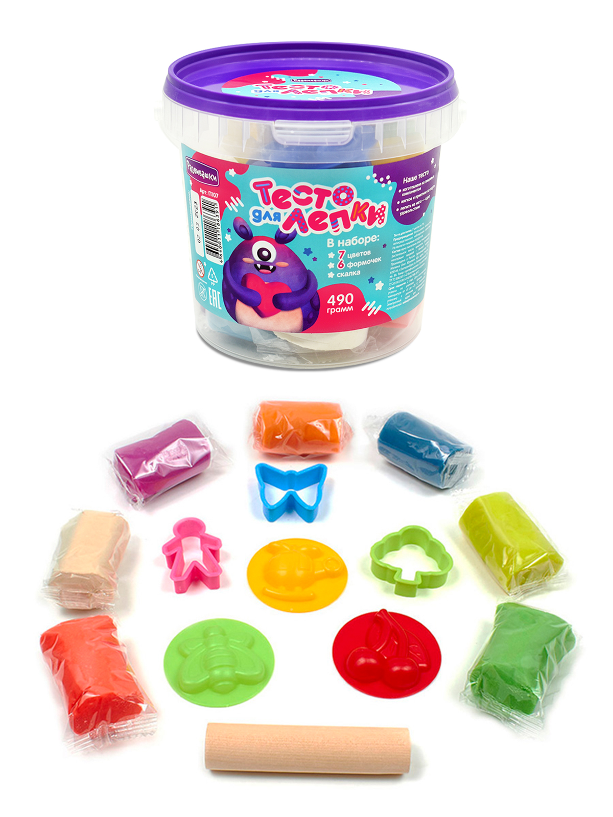 П117 Тесто для лепки, тесто 450 гр, 18 цветов, 6 форм, скалка, 1/20 quantity