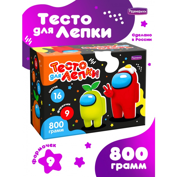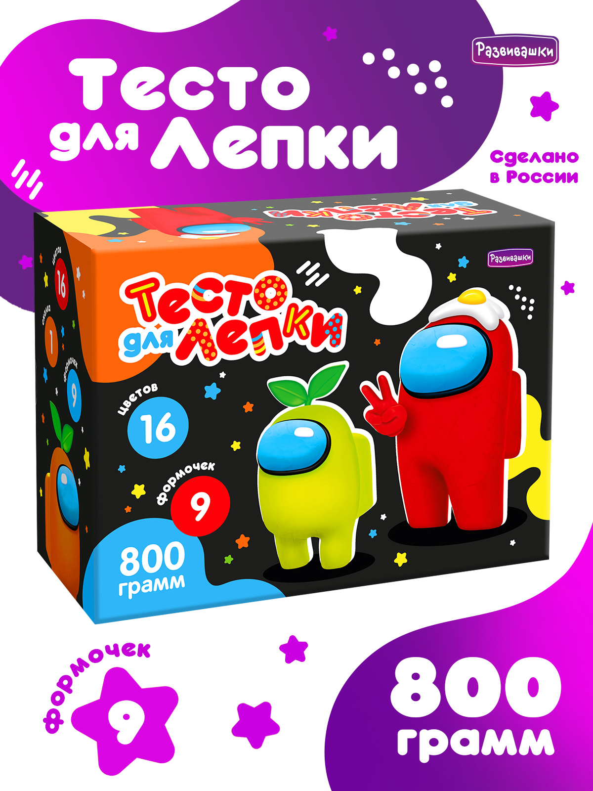 Home Тесто для лепки П129 Тесто для лепки в коробке 16 цветов по 50гр, 9форм, скалка, 700гр, 1/20