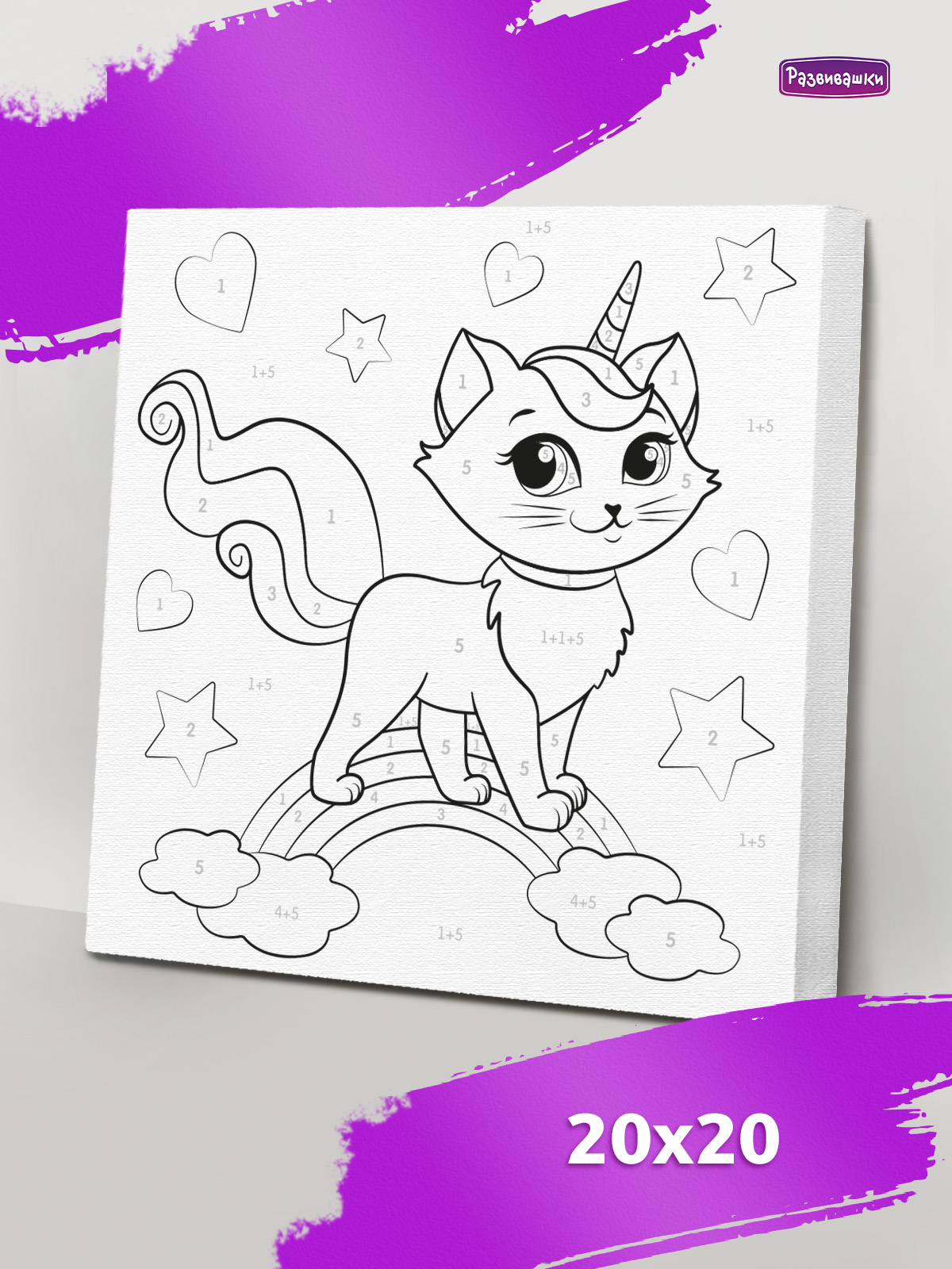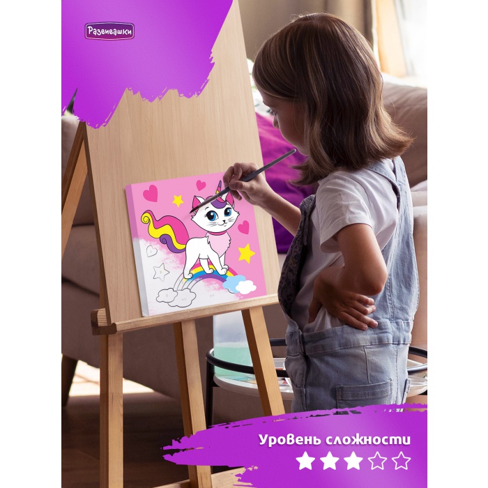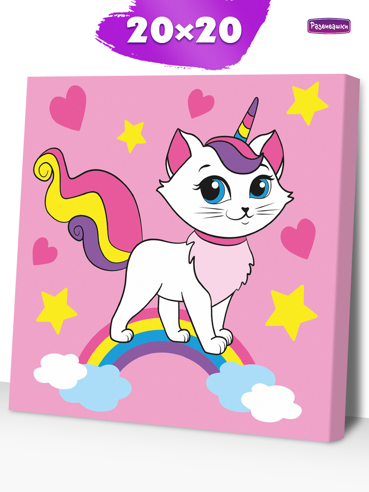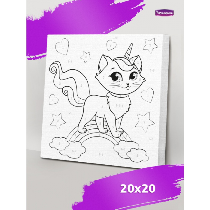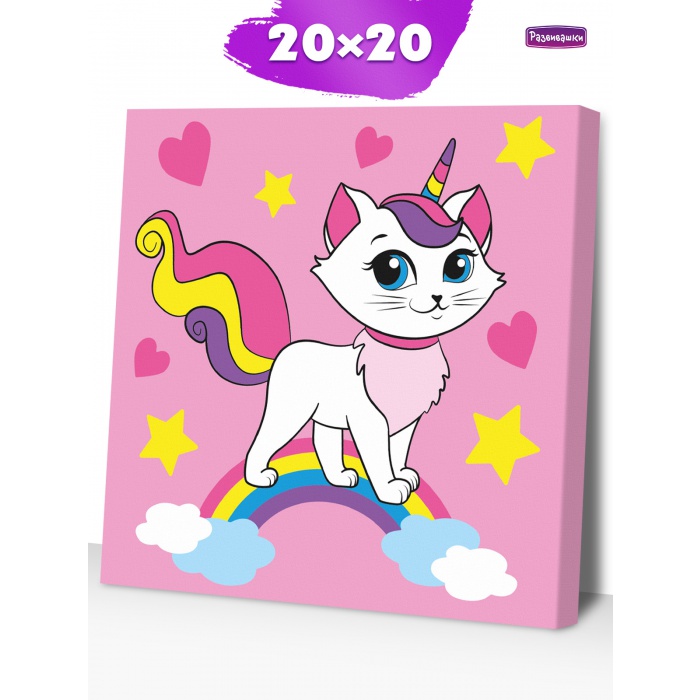 Home Картины по номерам для детей и взрослых Размер 20х20 см Р3041 Раскраска на холсте Радужная кошка 20*20