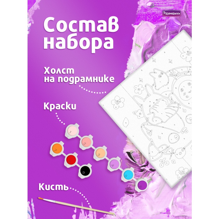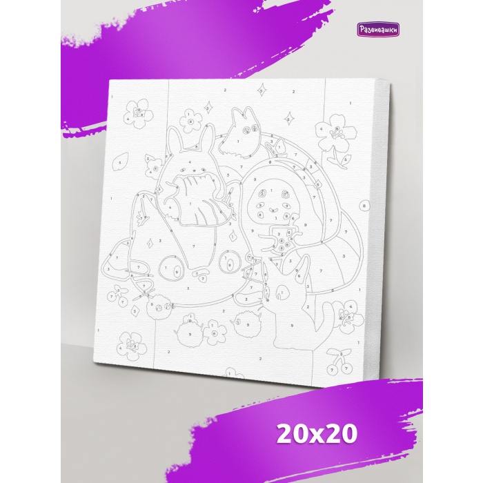 Р3096 Раскраска на холсте Котоёлка 20х20