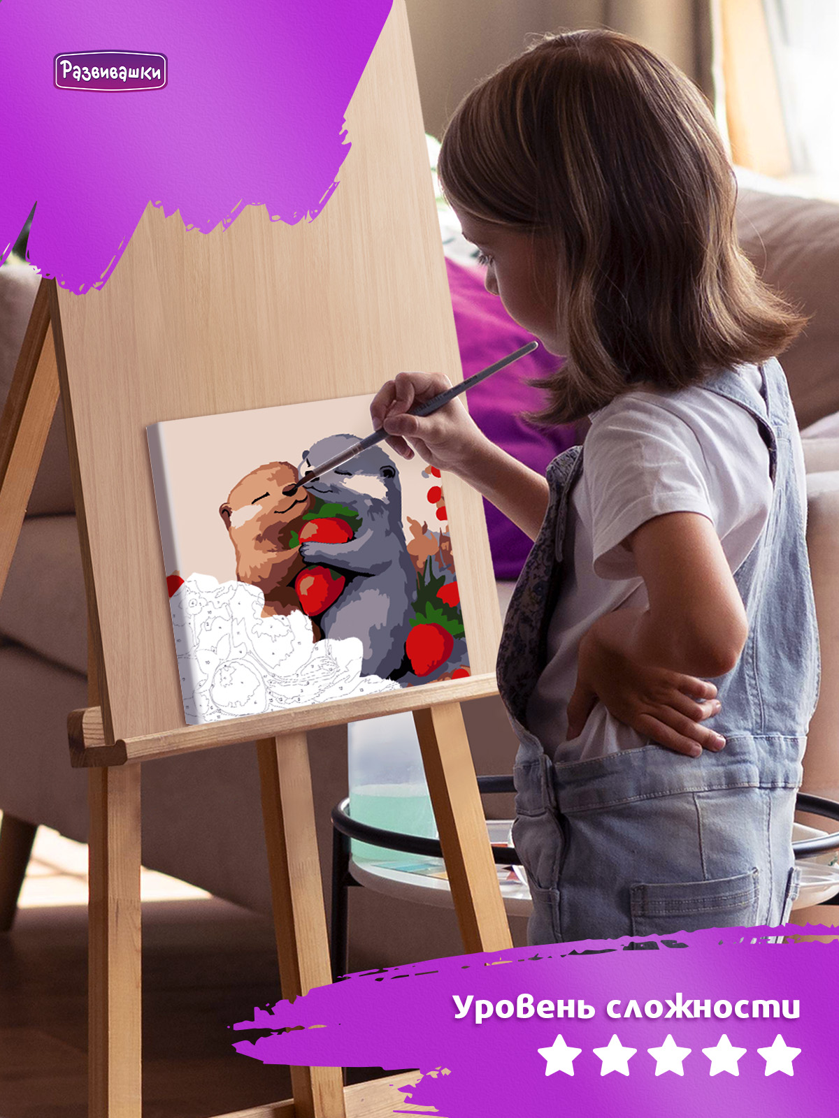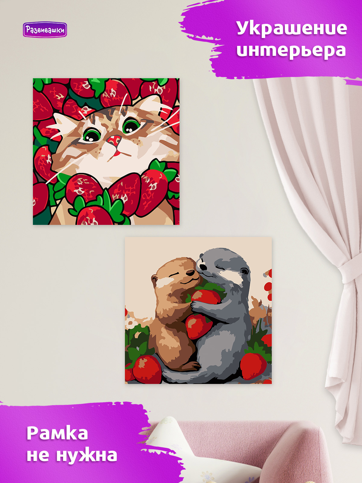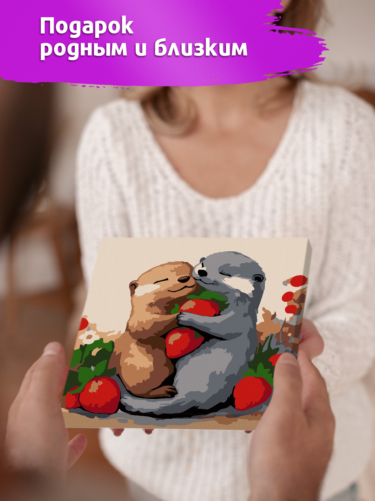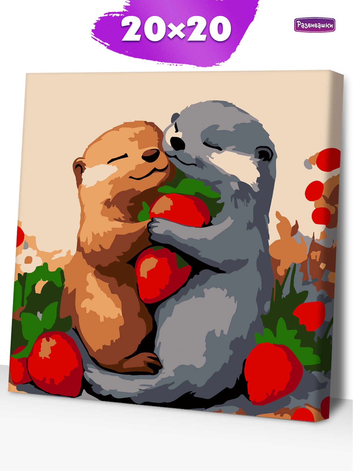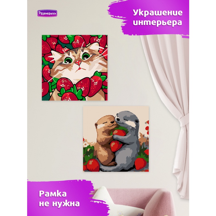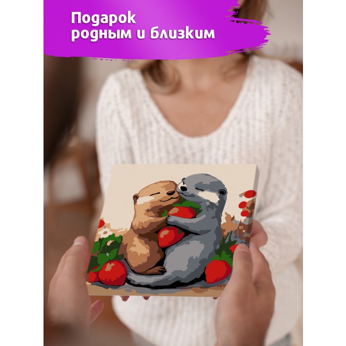 Home Картины по номерам для детей и взрослых Размер 20х20 см Р4170 Картина по номерам Выдры с клубникой 20*20