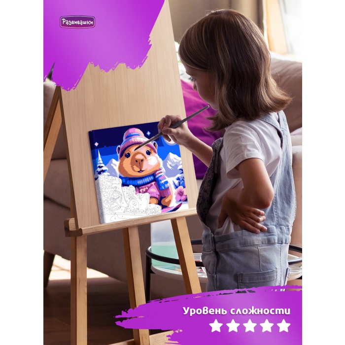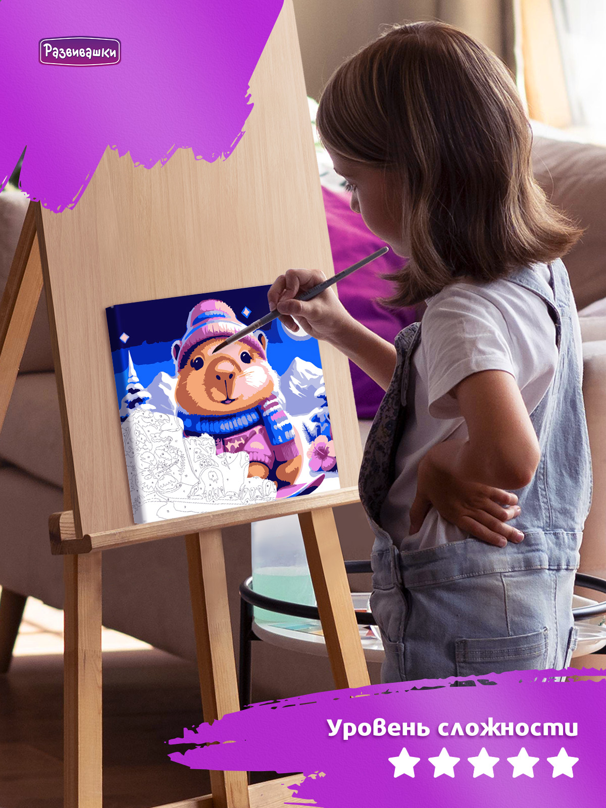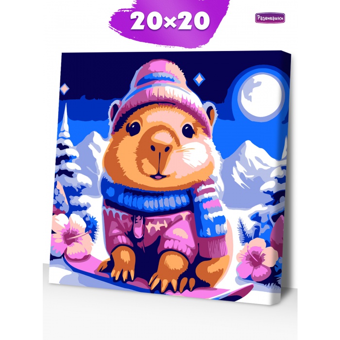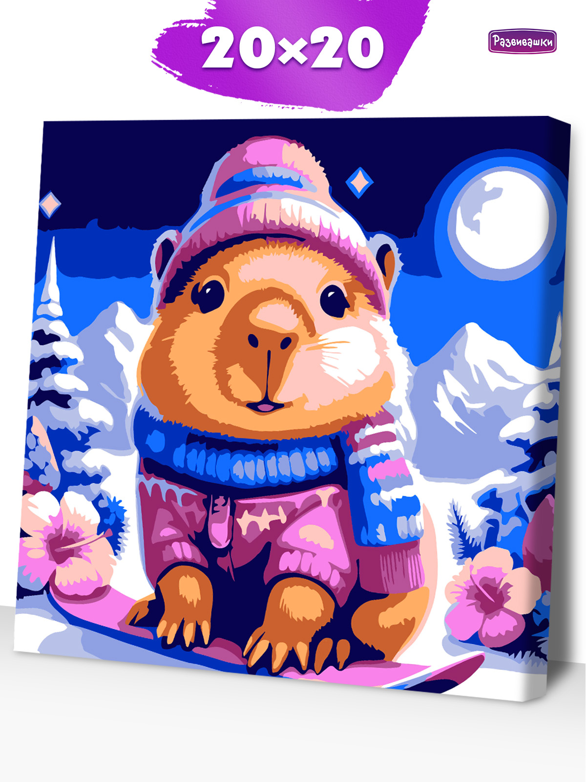 Home Картины по номерам для детей и взрослых Размер 20х20 см Р4209 Картина по номерам Капибара на сноуборде 20*20