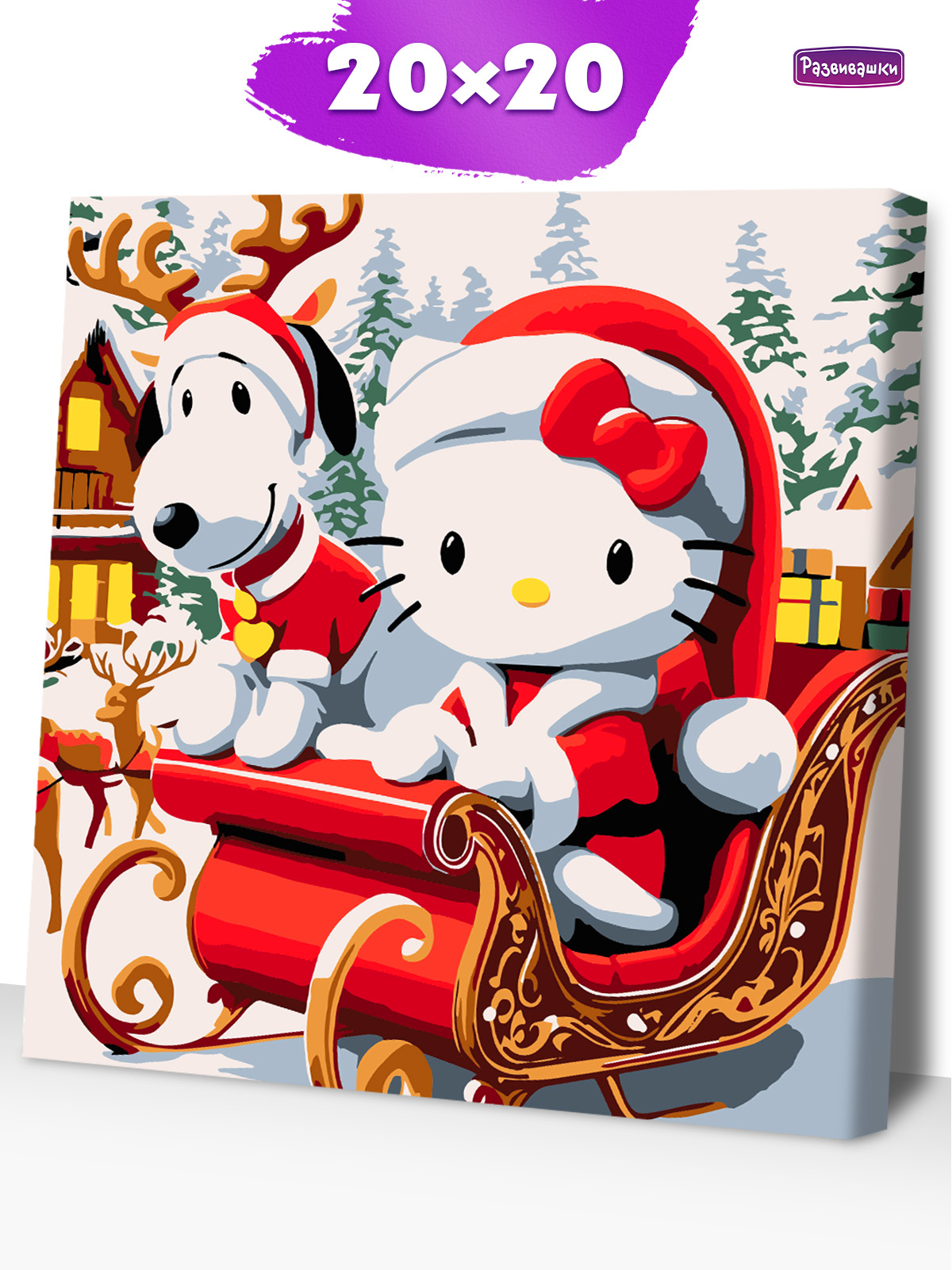 Р4222 Картина по номерам Китти на санях 20*20