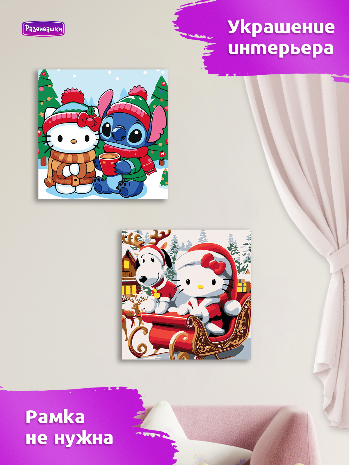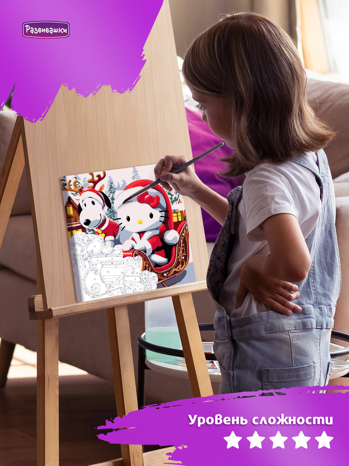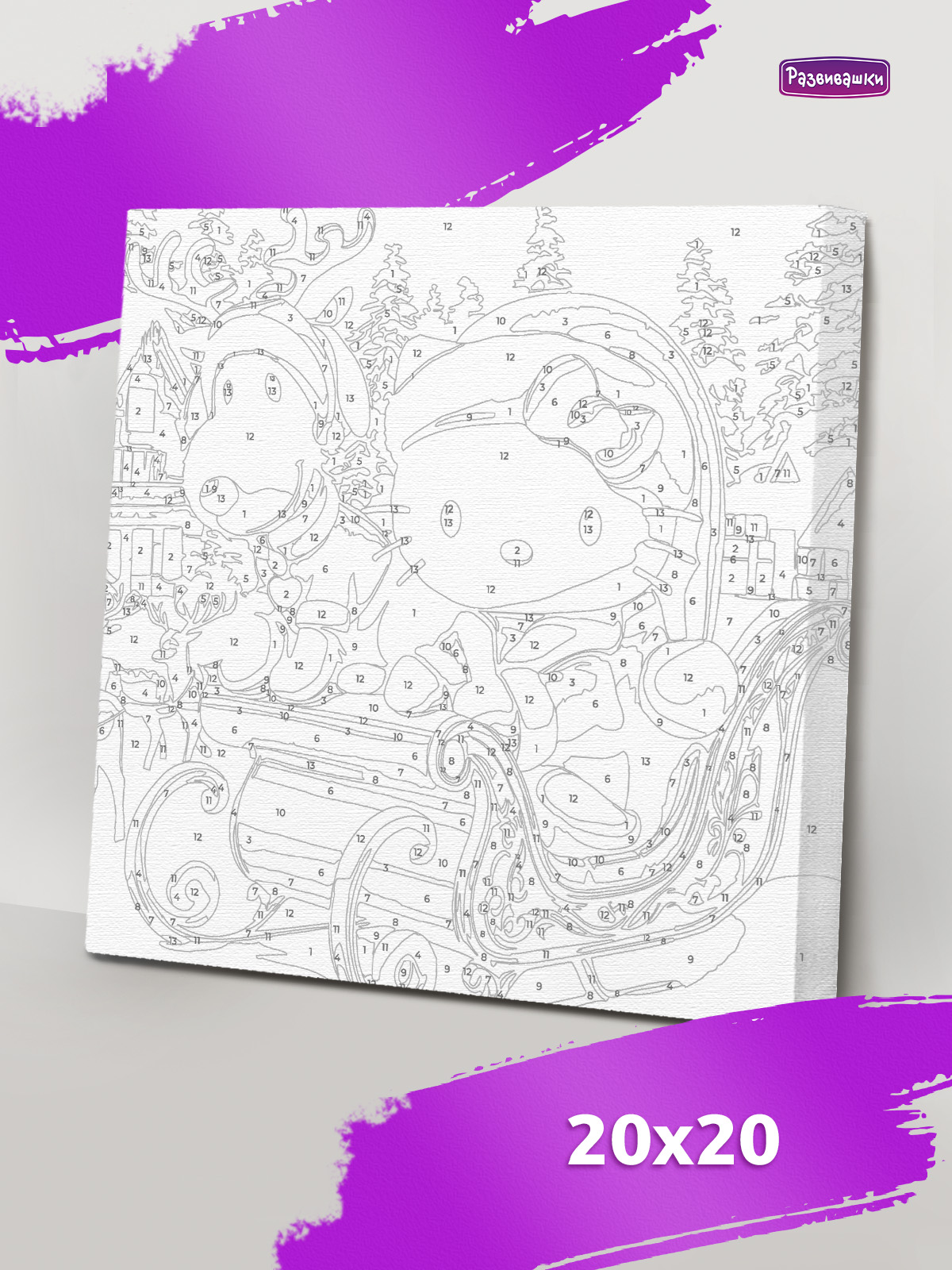 Home Картины по номерам для детей и взрослых Размер 20х20 см Р4222 Картина по номерам Китти на санях 20*20