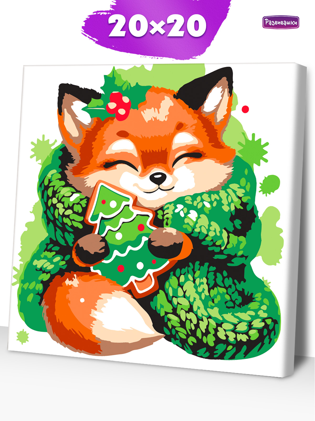 Home Картины по номерам для детей и взрослых Размер 20х20 см Р4227 Картина по номерам Лисёнок в пледе 20*20