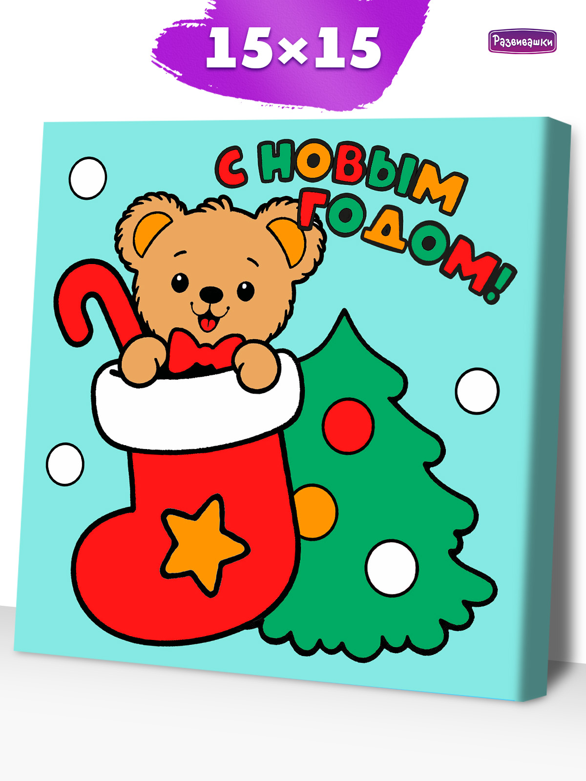 Р4235 Картина по номерам Мишка в носочке 15*15