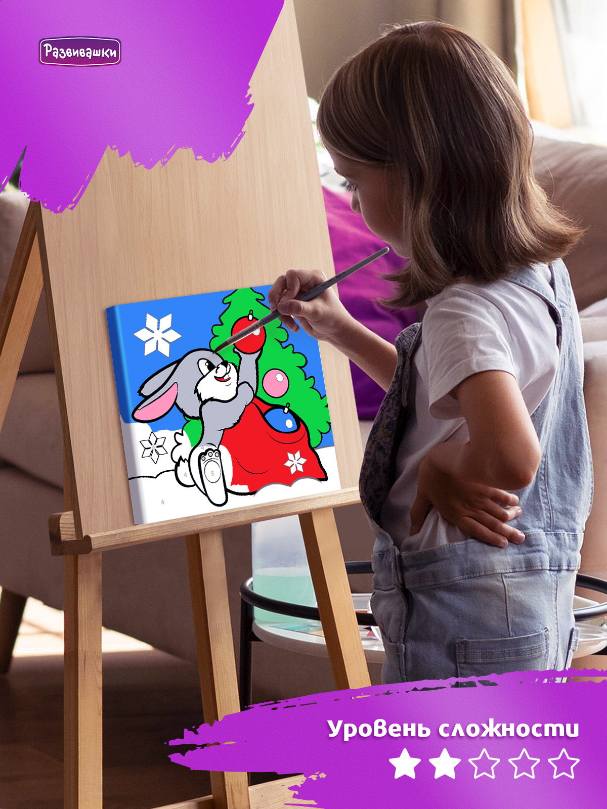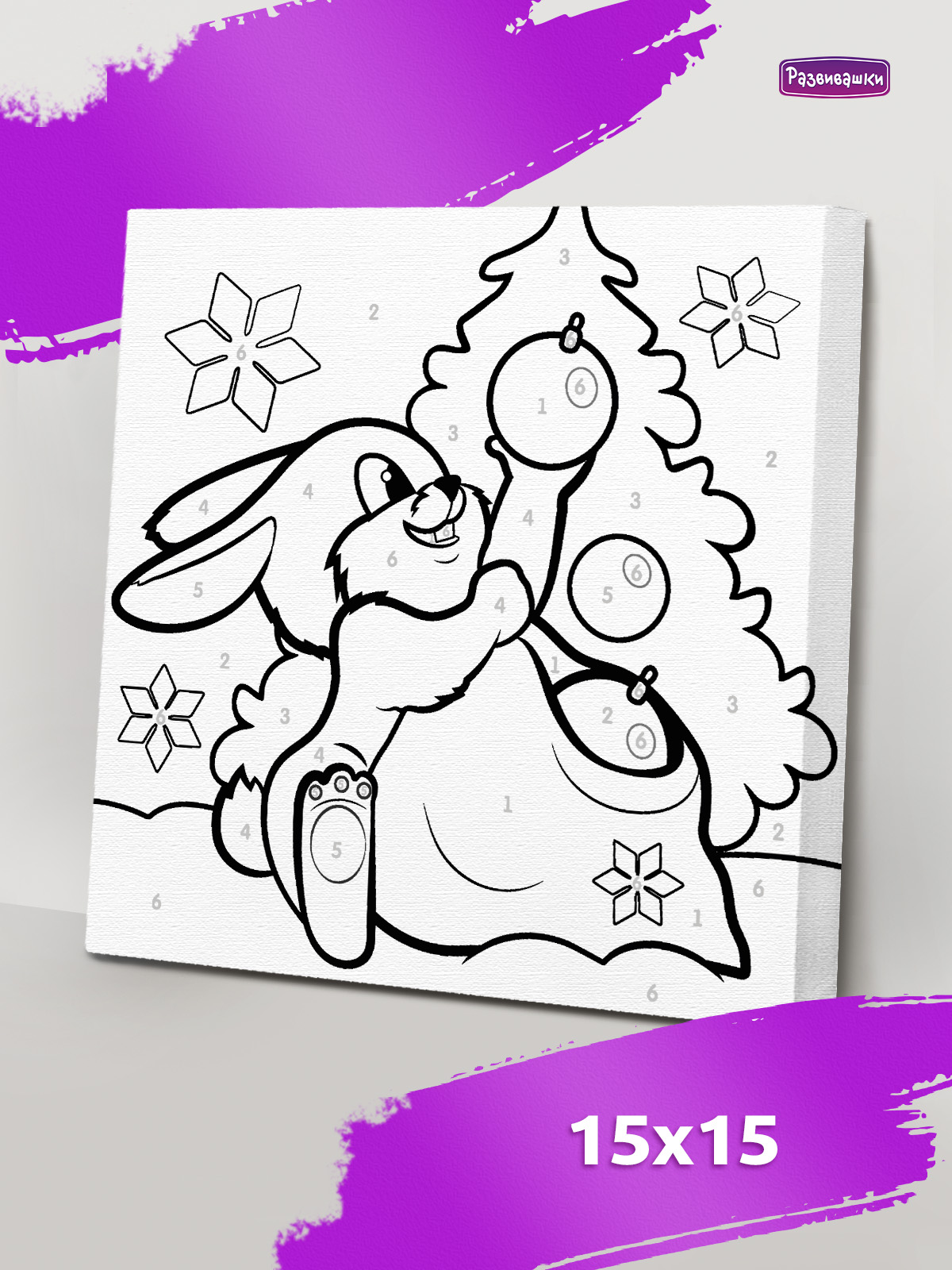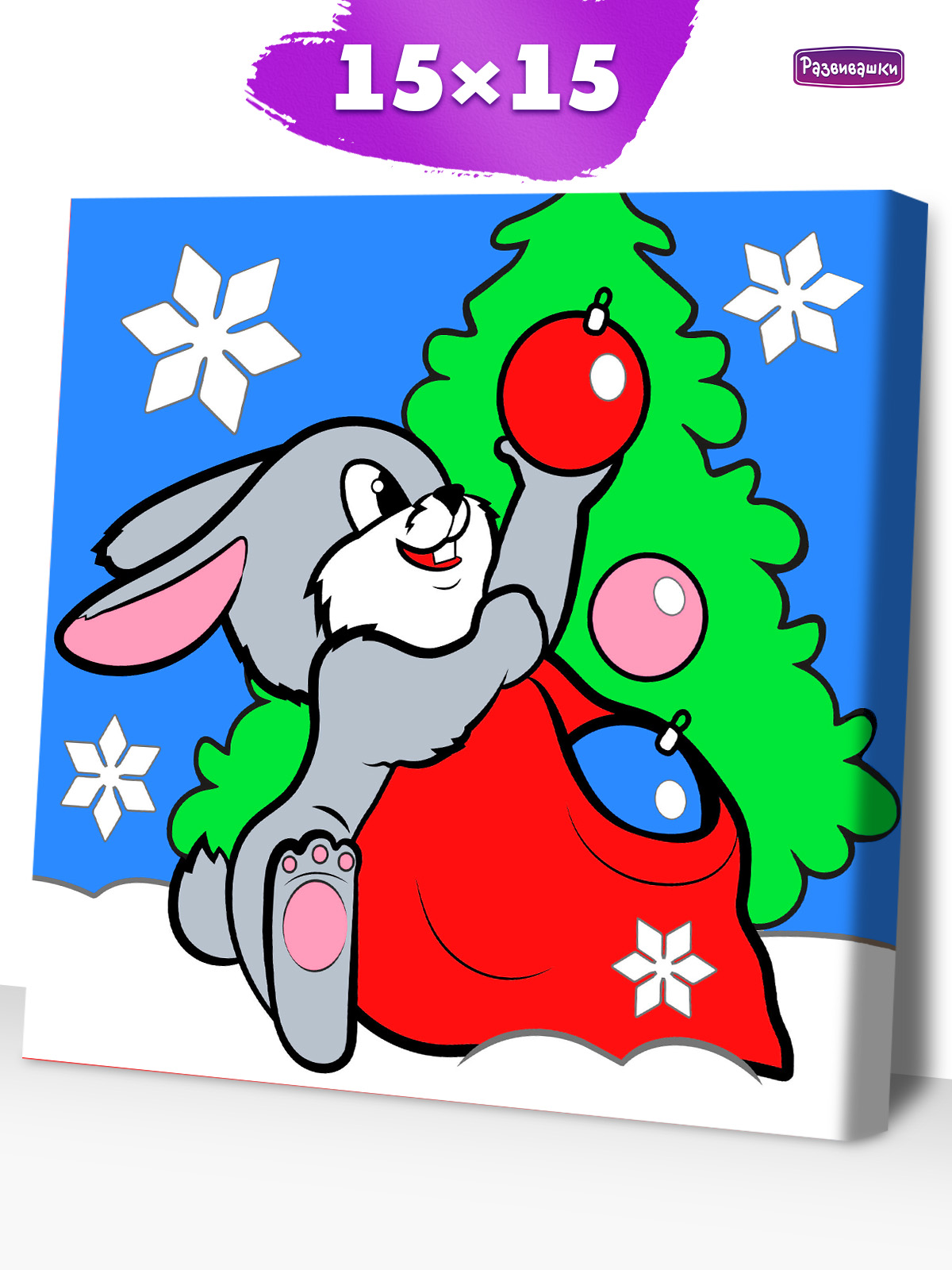 Р4238 Картина по номерам Зайка у ёлочки 15*15