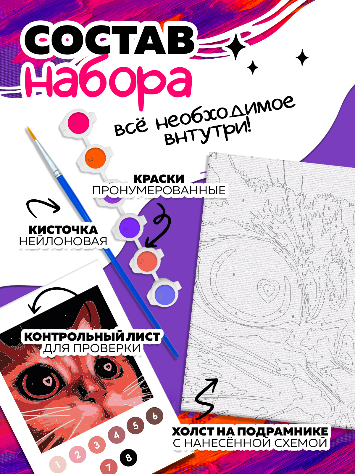 Р4047 Картина по номерам Котёнок с леденцом 15х15