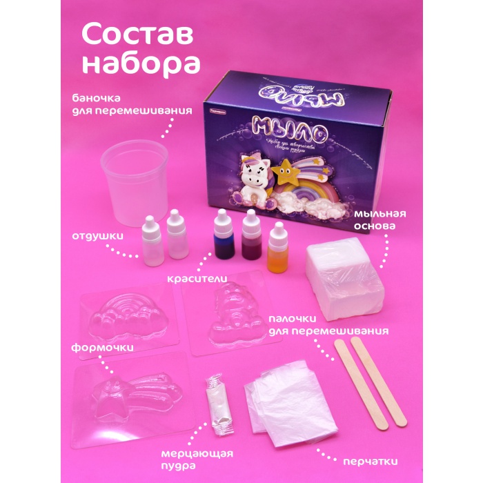 Home Мыло Бомбочки Косметика Средние наборы для мыловарения С0253 Мыло своими руками. Единорог, звезда, радуга, 1/28