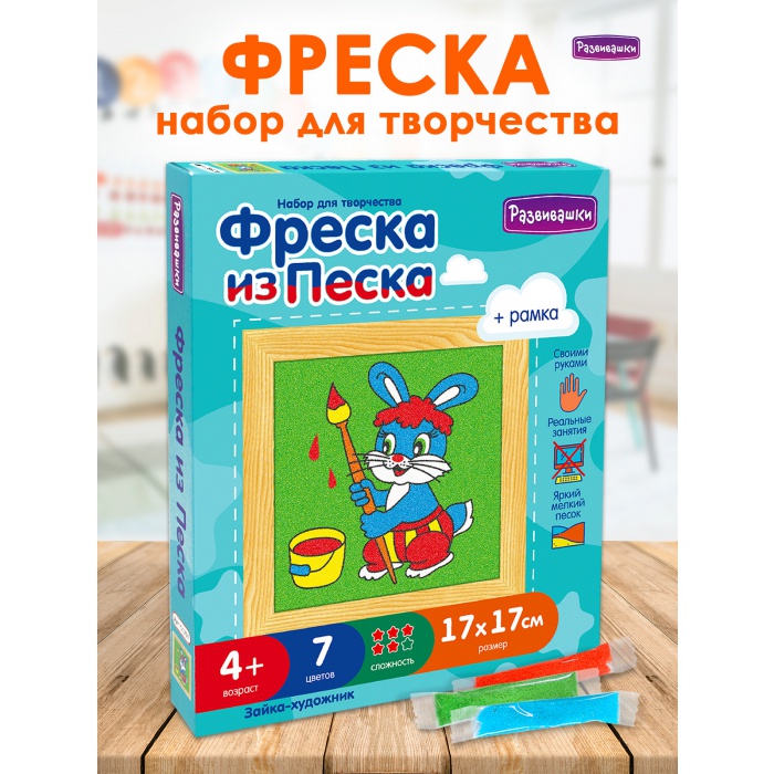 С1701 Фреска из цветного песка "Зайка-художник" quantity