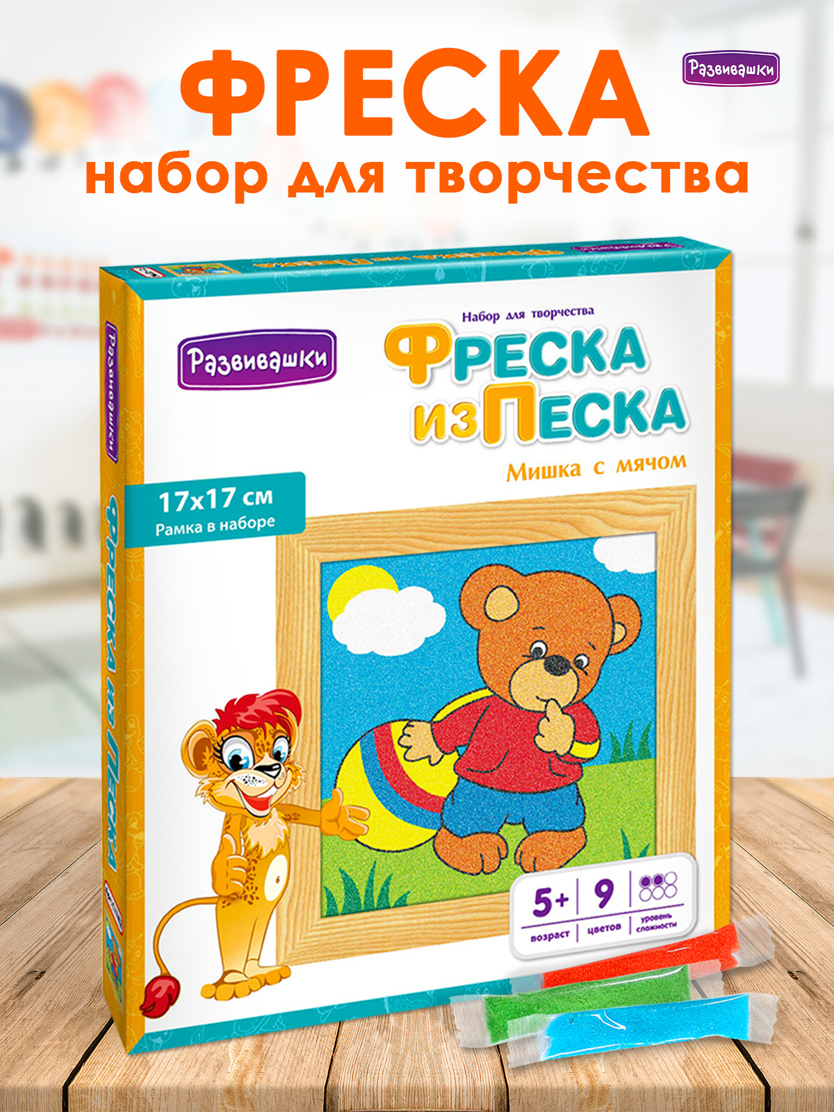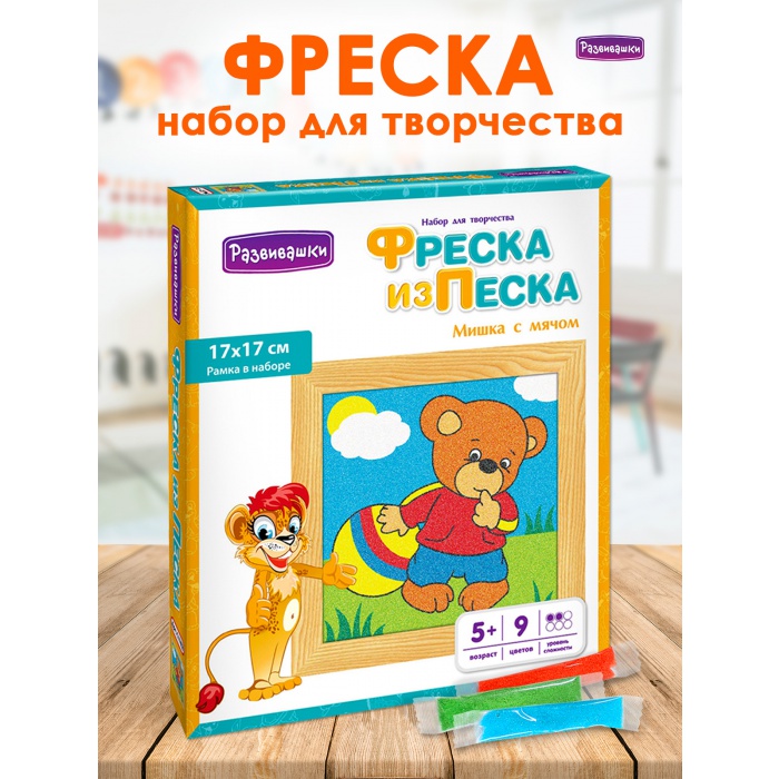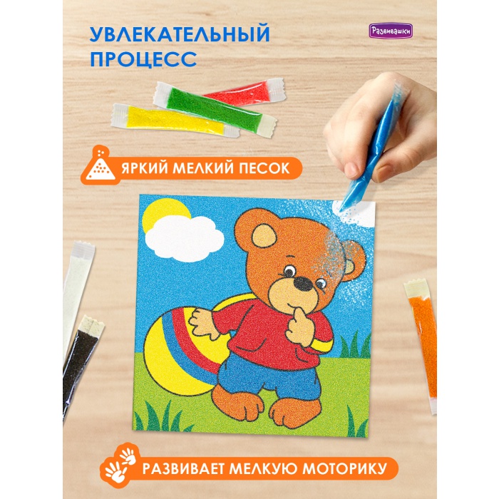 С1702 Фреска из цветного песка "Мишка с мячом" quantity