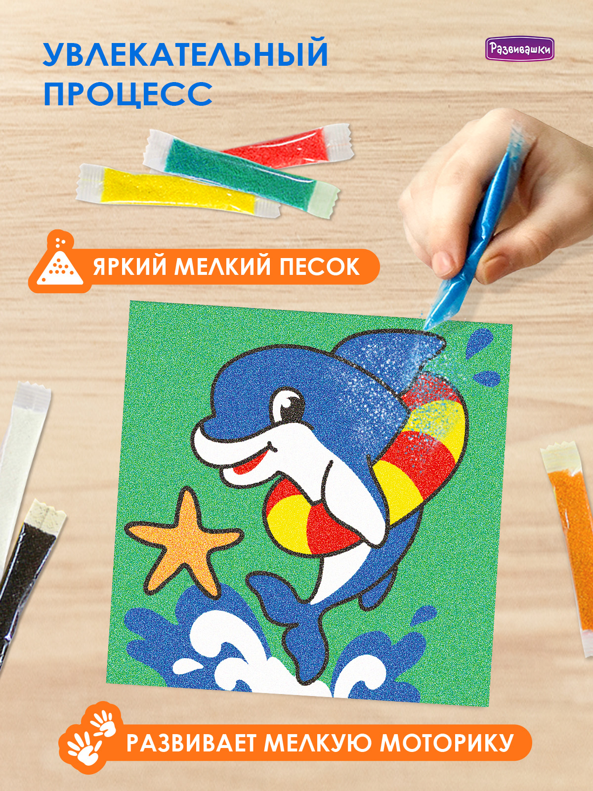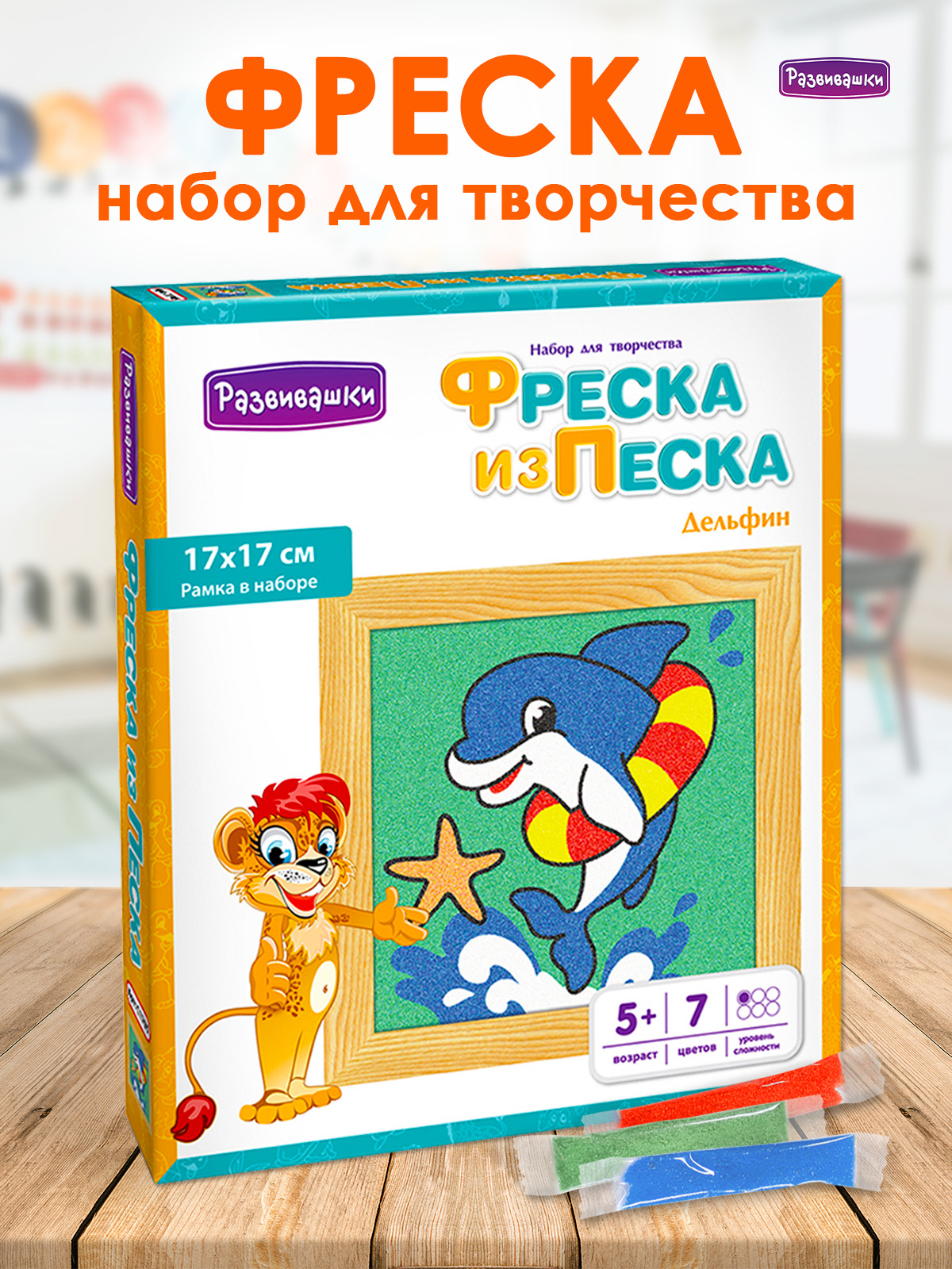 Home Фрески - роспись цветным песком Фрески 17х17 см с рамкой С1705 Фреска из цветного песка «Дельфин»