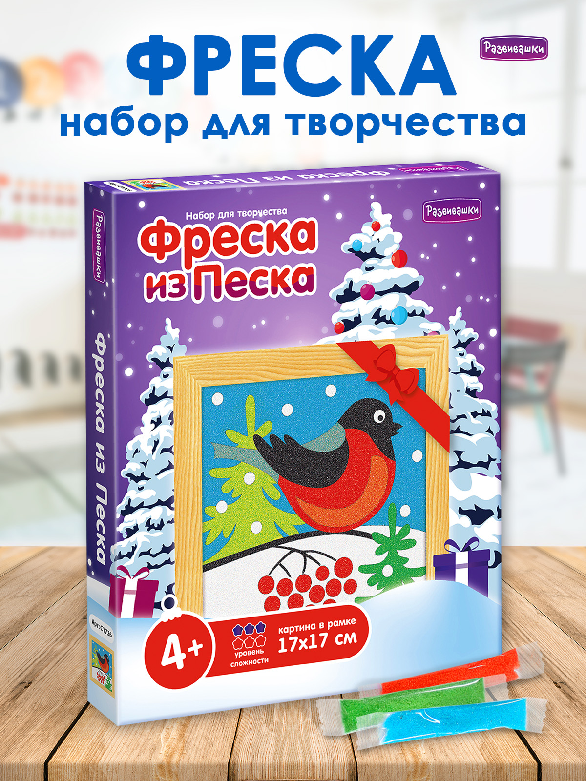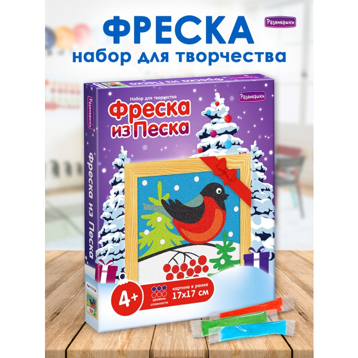 Home Фрески - роспись цветным песком Фрески 17х17 см с рамкой С1726 Фреска из цветного песка «Снегирь»