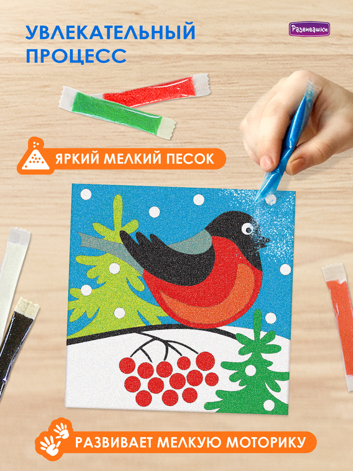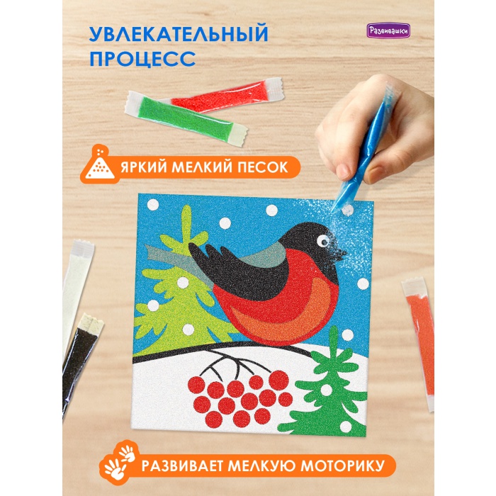 С1726 Фреска из цветного песка «Снегирь»