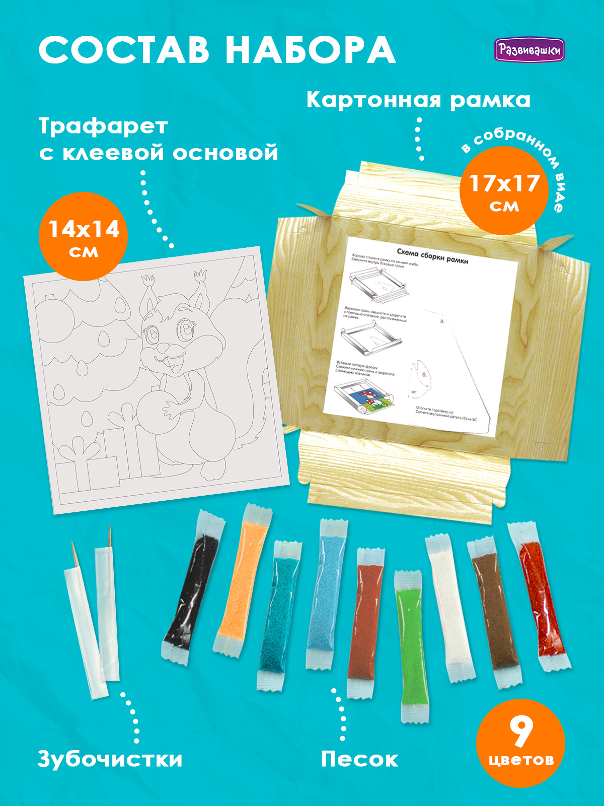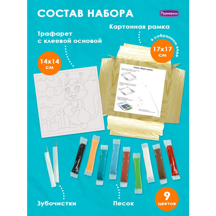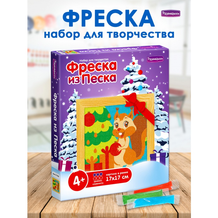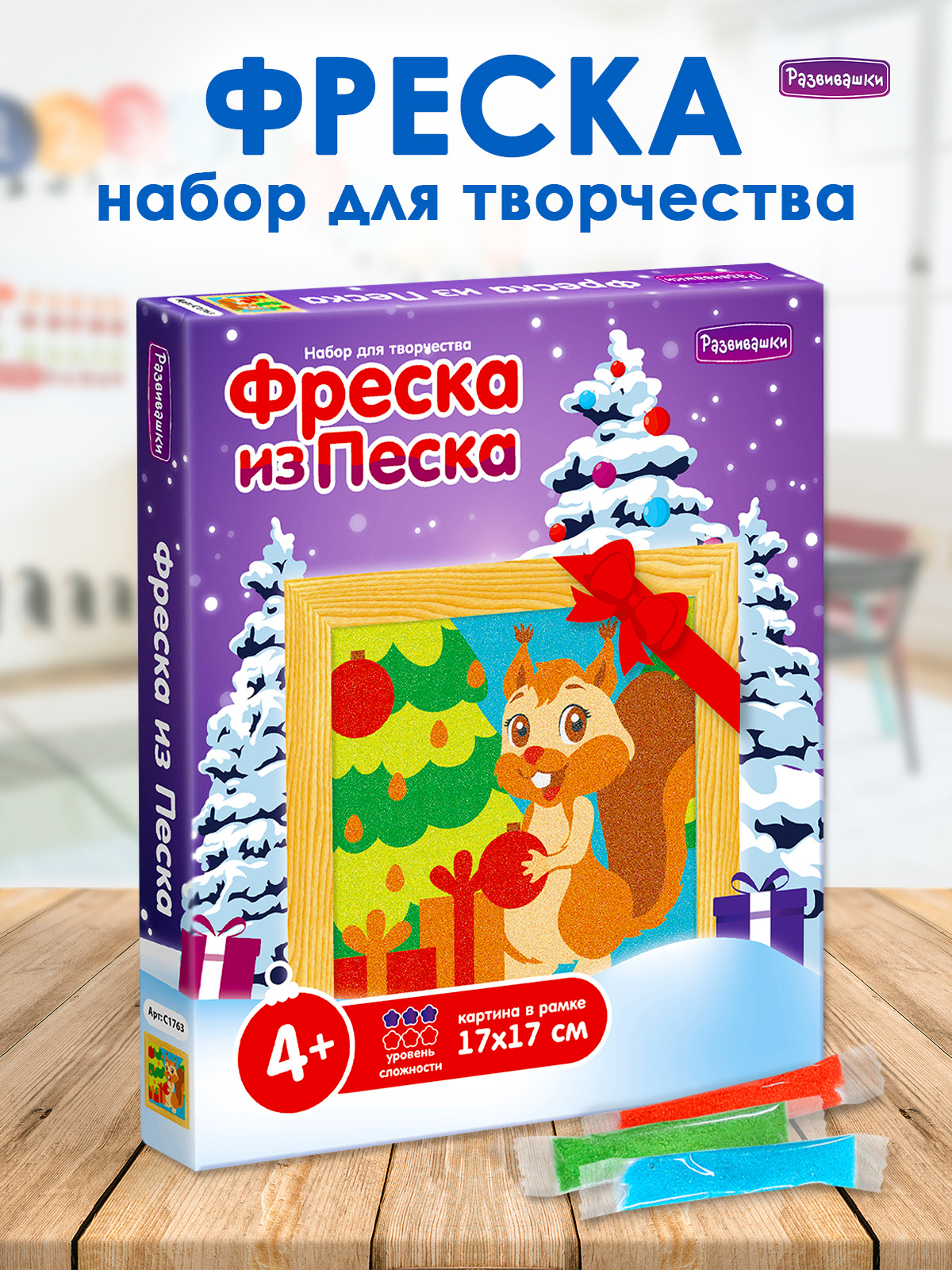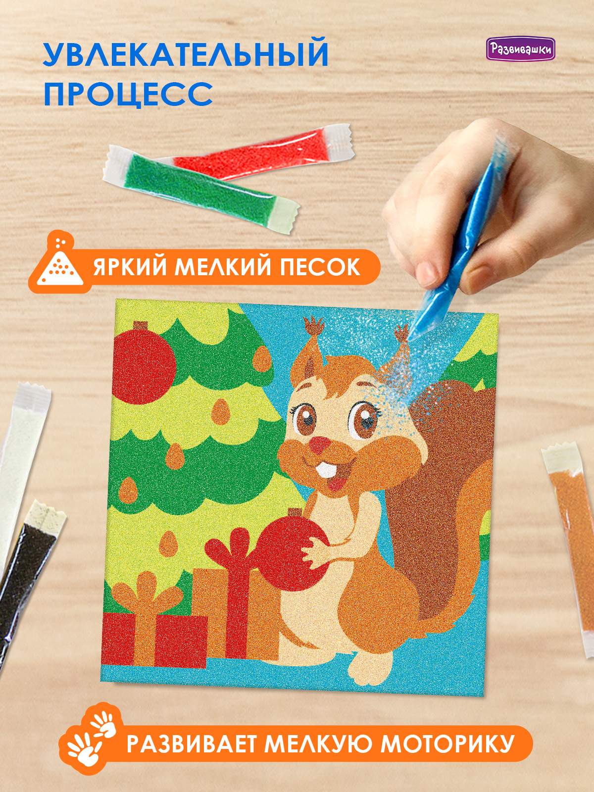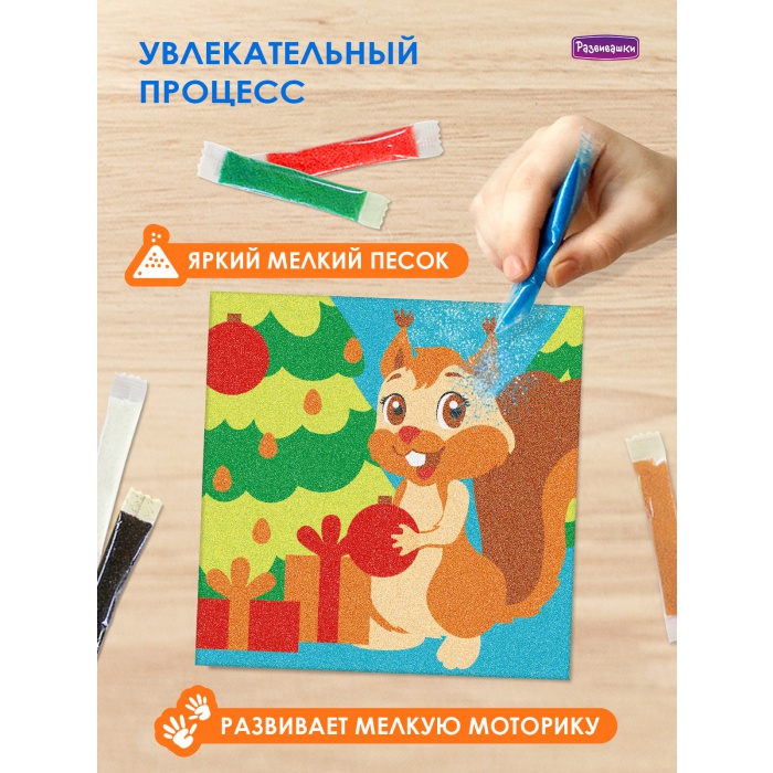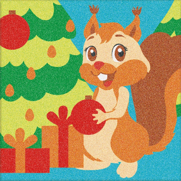 Home Фрески - роспись цветным песком Фрески 17х17 см с рамкой С1763 Фреска из песка Белка у елки