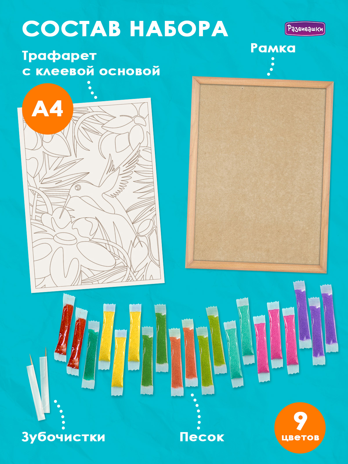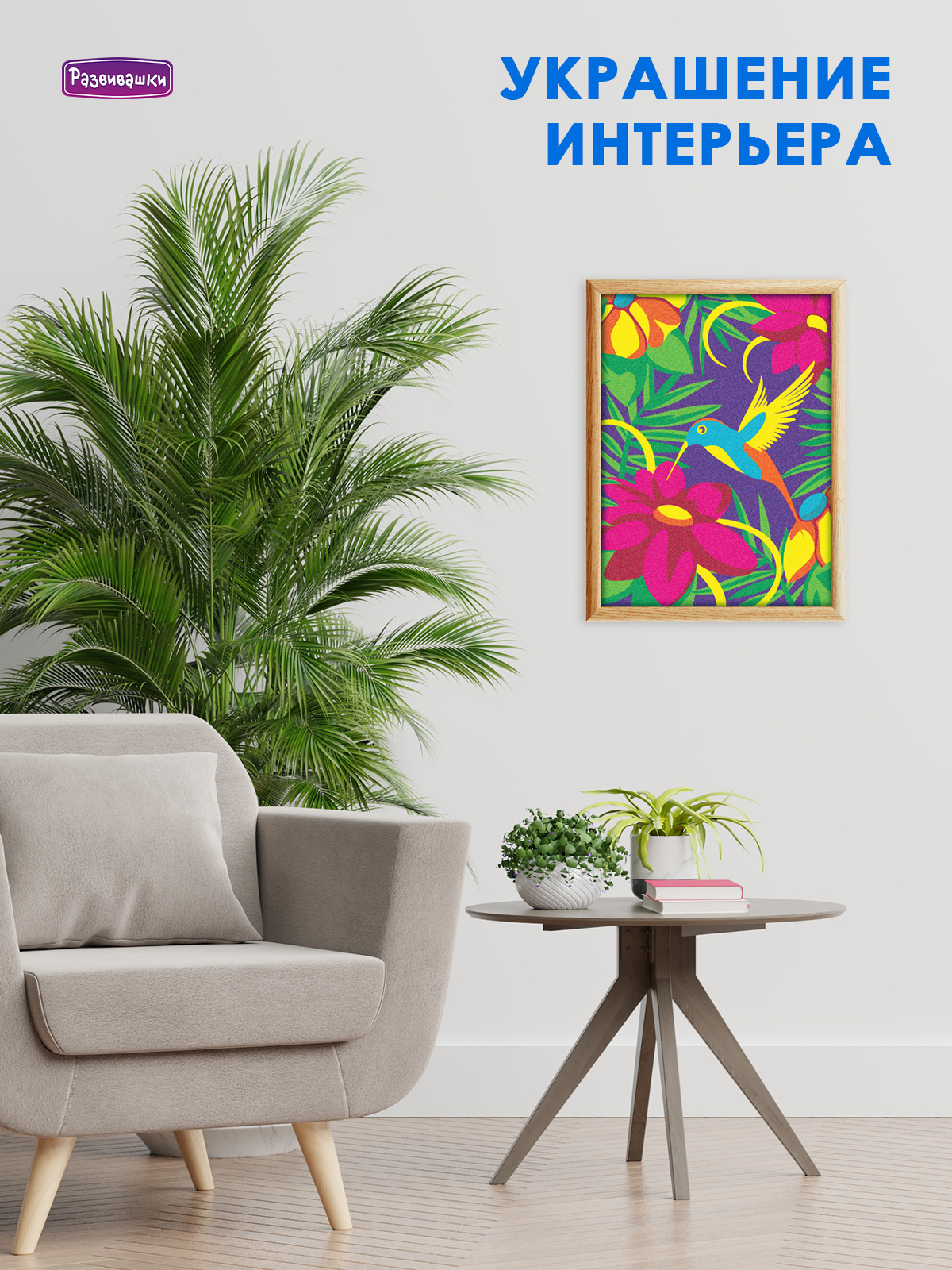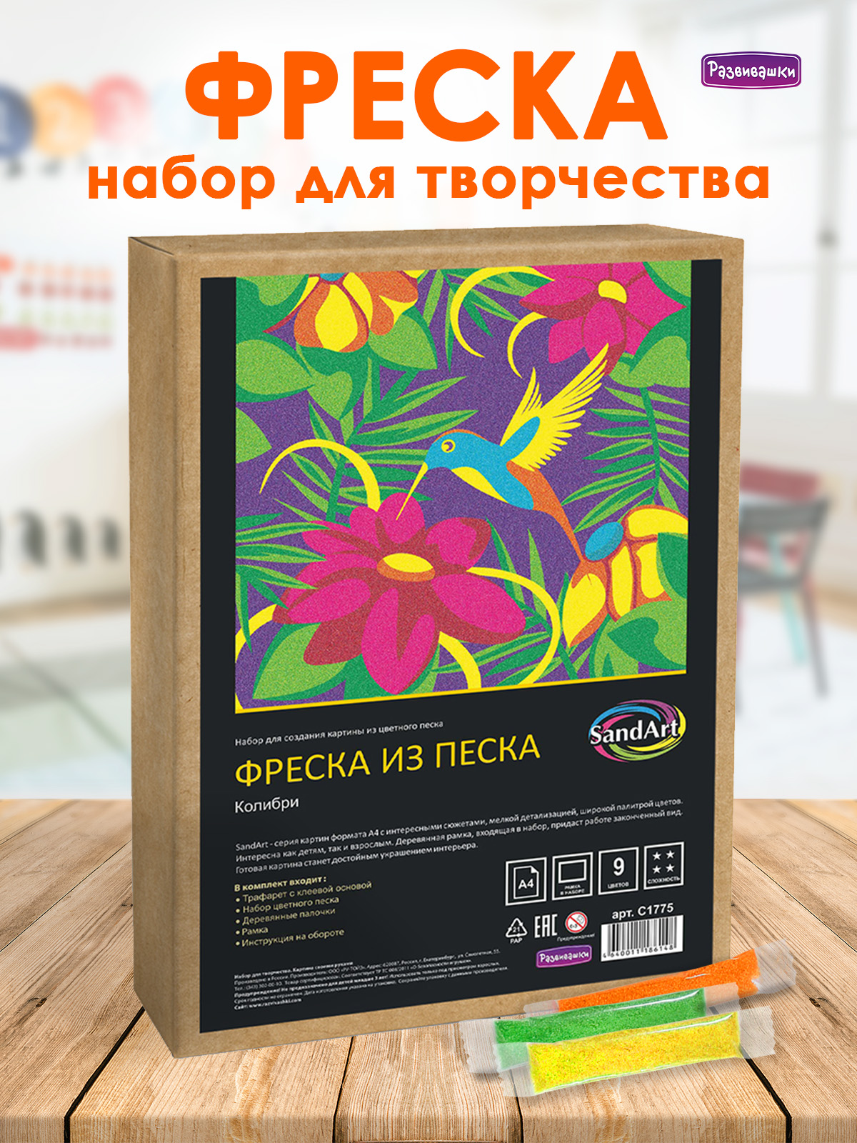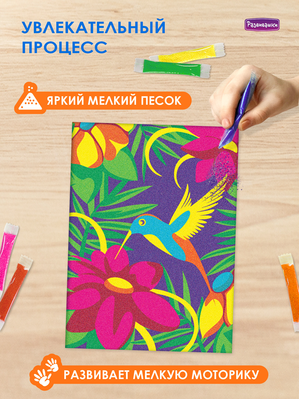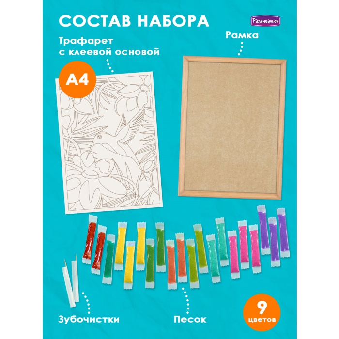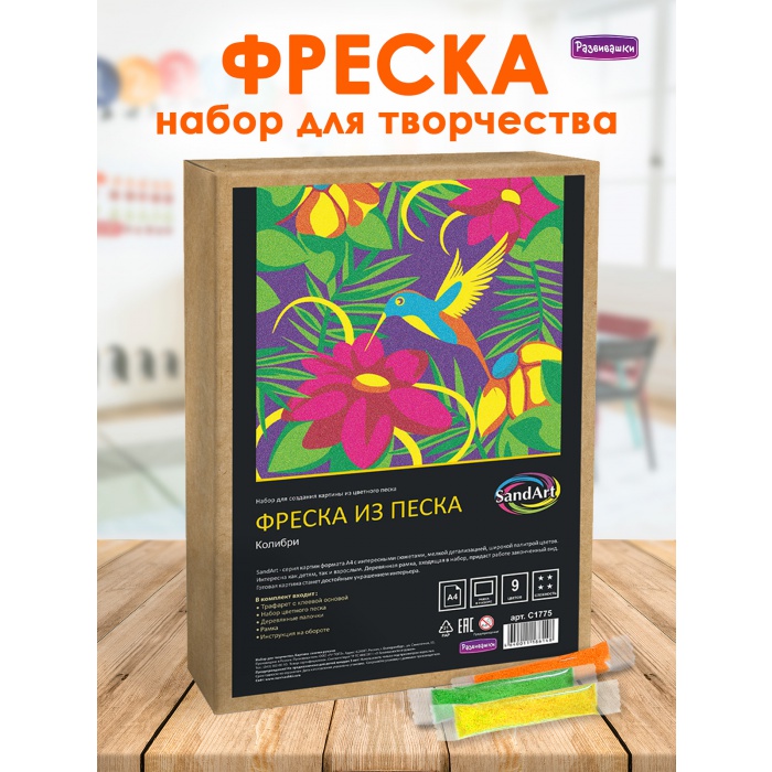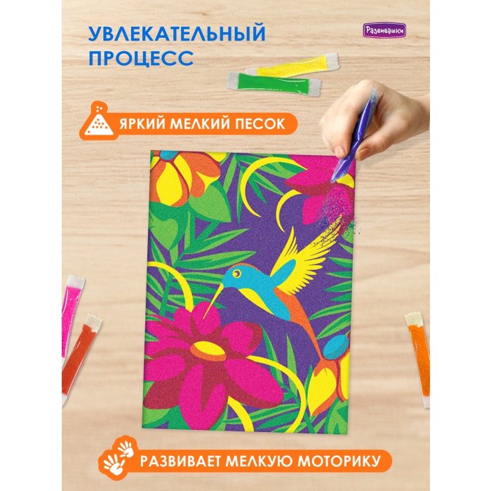 Home Фрески - роспись цветным песком Фрески большие 30х20 см С1775 Фреска из цветного песка А4 «Колибри»