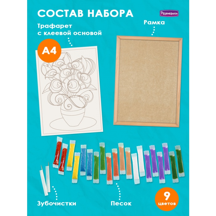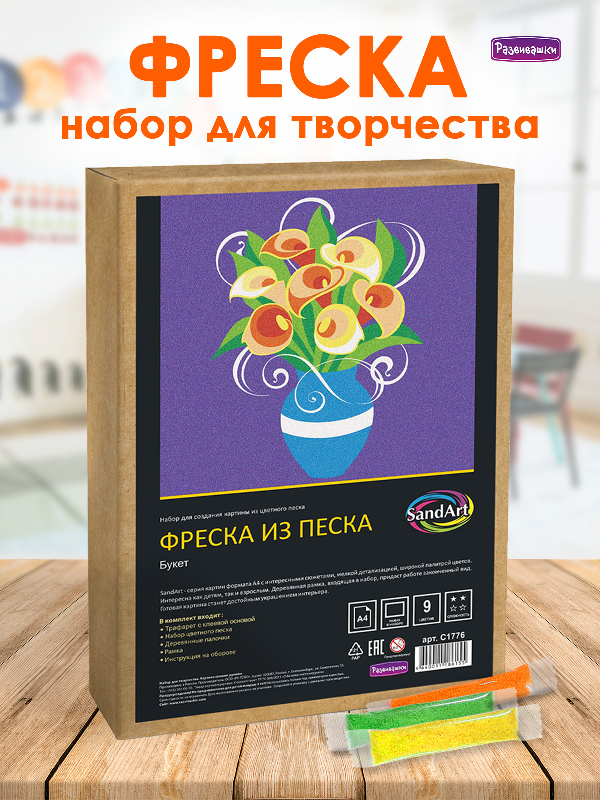 С1776 Фреска из цветного песка А4 "Букет" quantity
