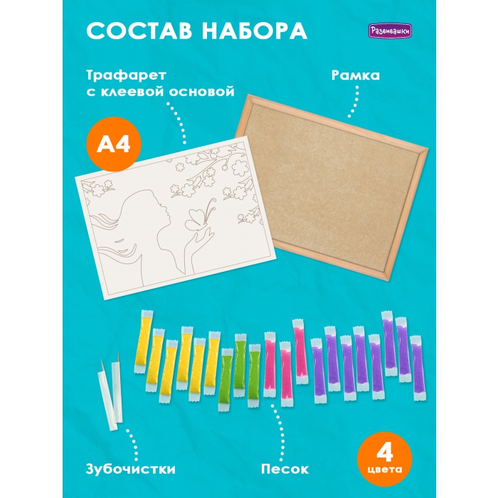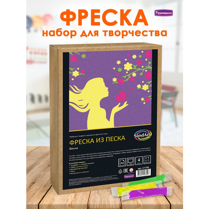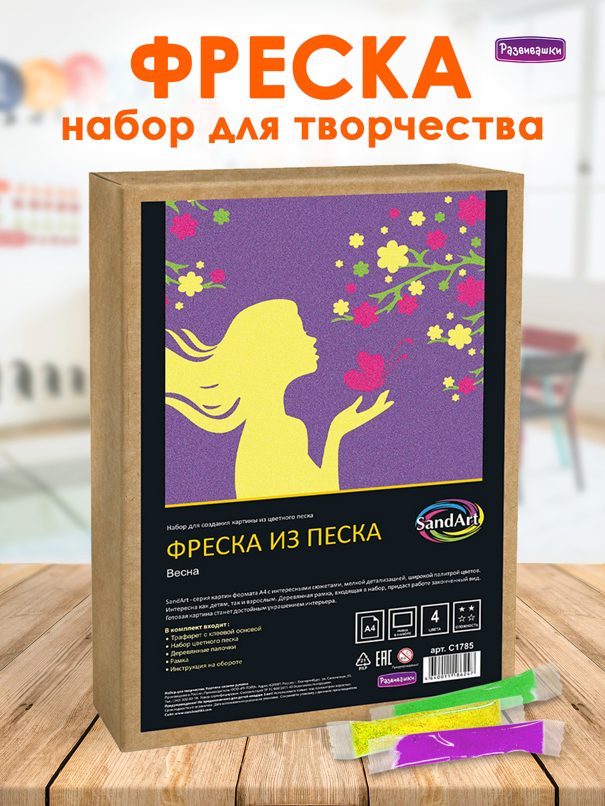Home Фрески - роспись цветным песком Фрески большие 30х20 см С1785 Фреска из цветного песка А4 «Весна»