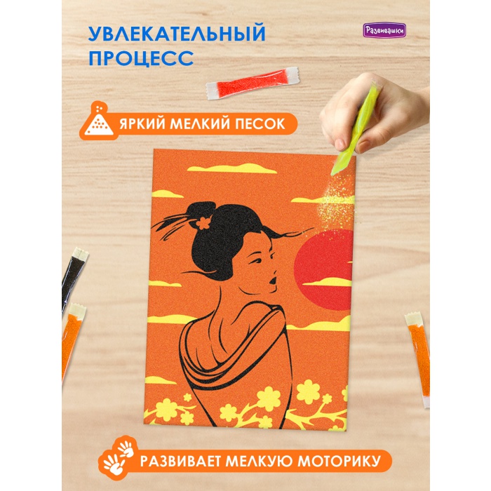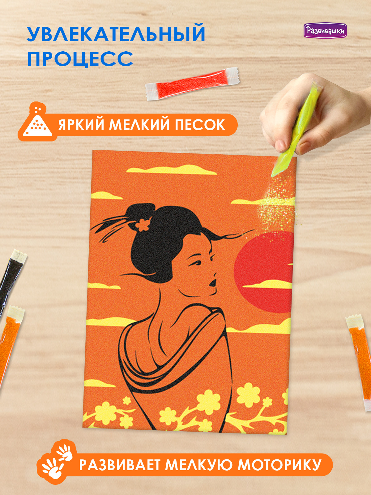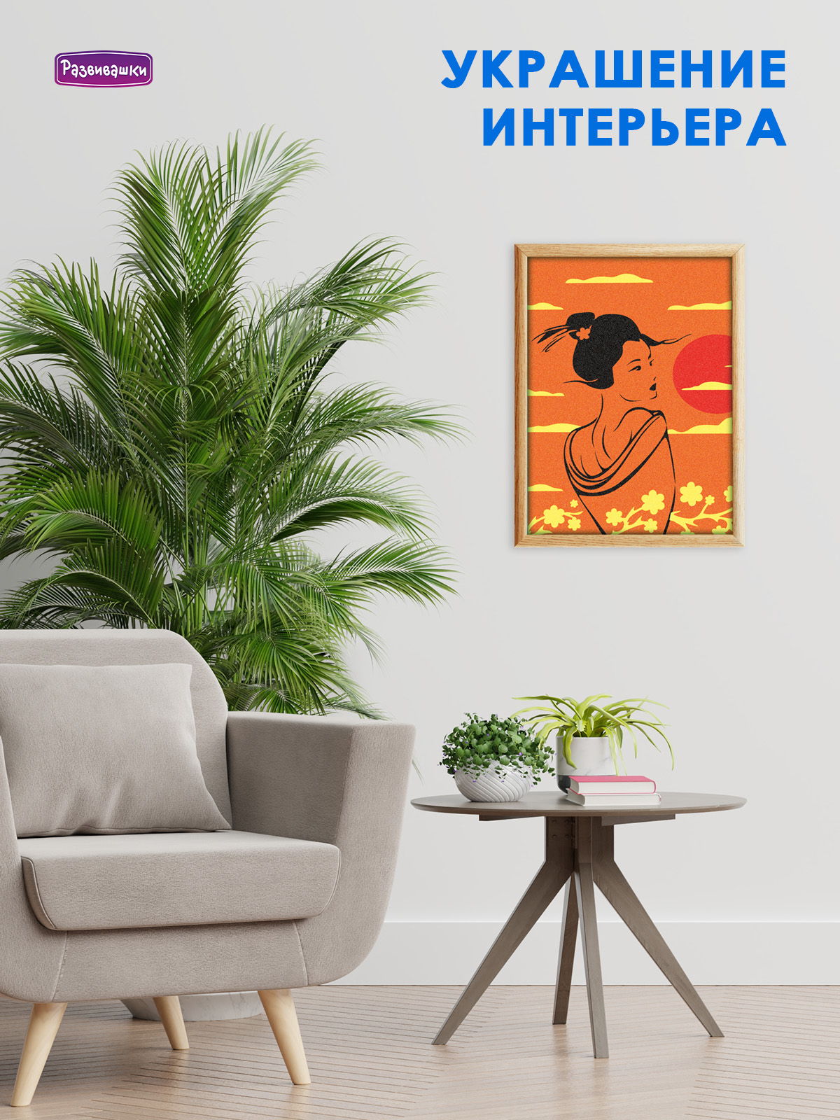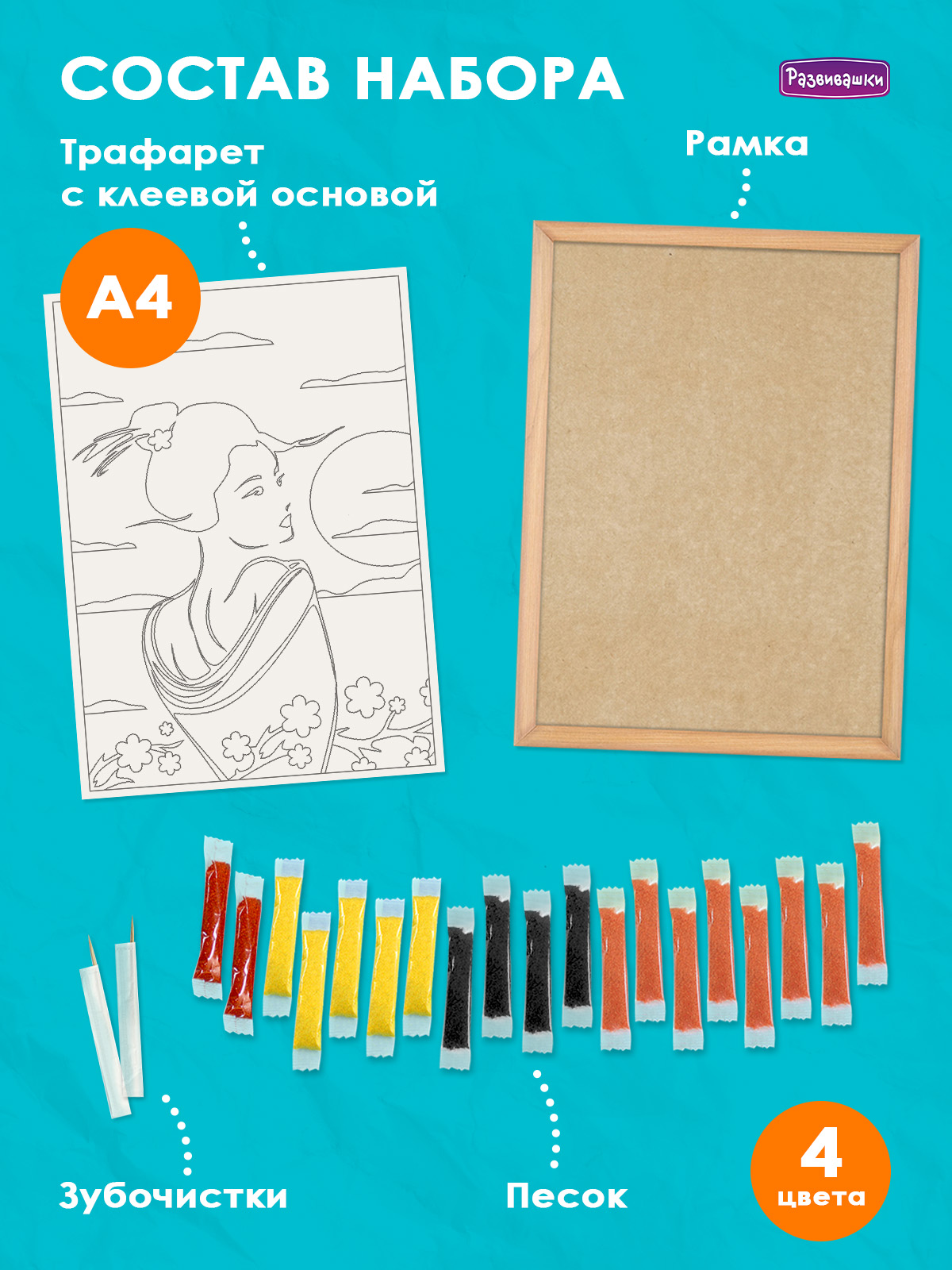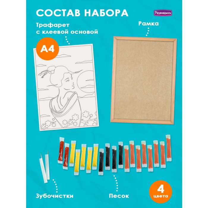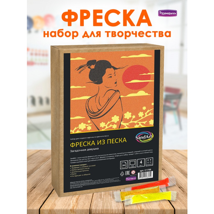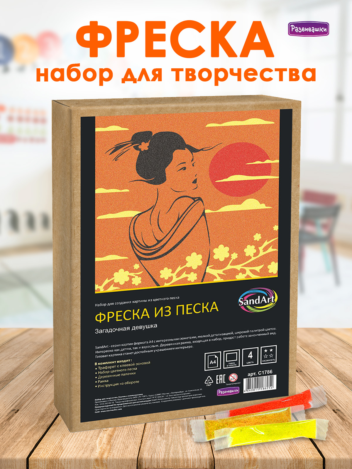 Home Фрески - роспись цветным песком Фрески большие 30х20 см С1786 Фреска из цветного песка А4 «Загадочная девушка»