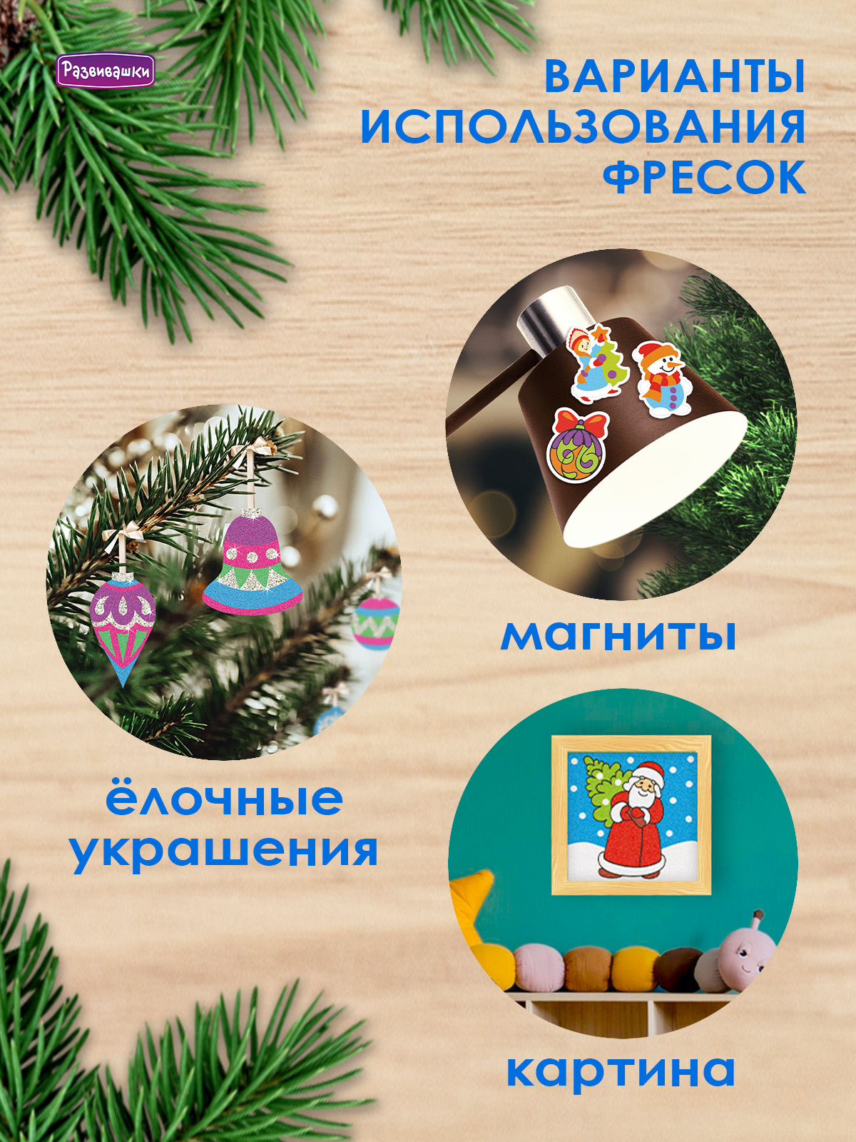 С1750 Фреска из цветного песка Магниты «Дед мороз, снежинка, елочка» /28