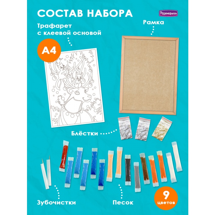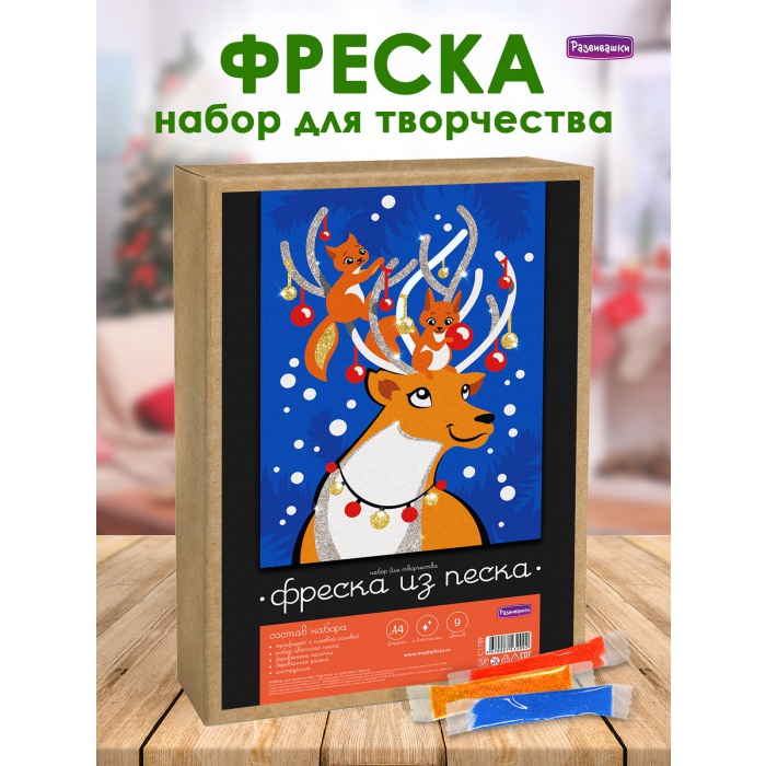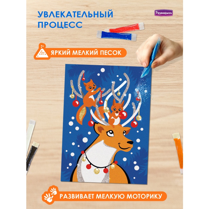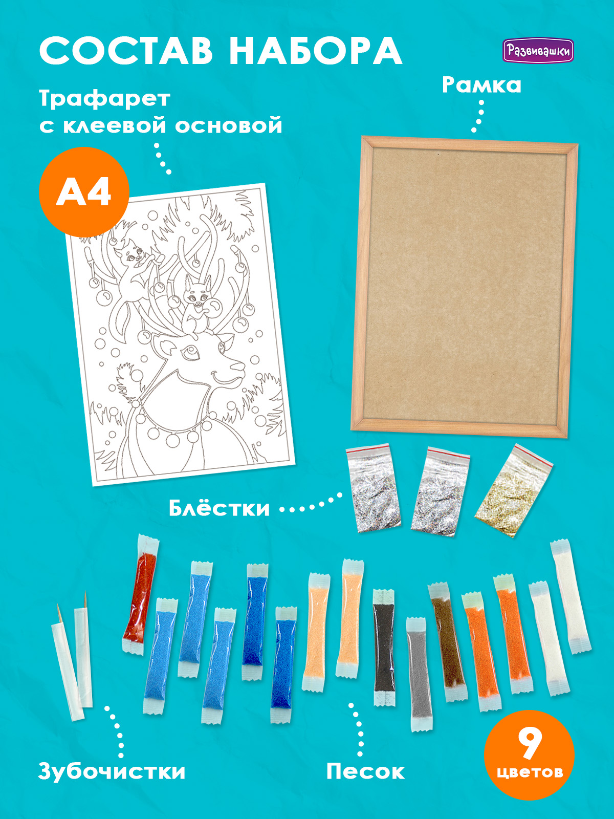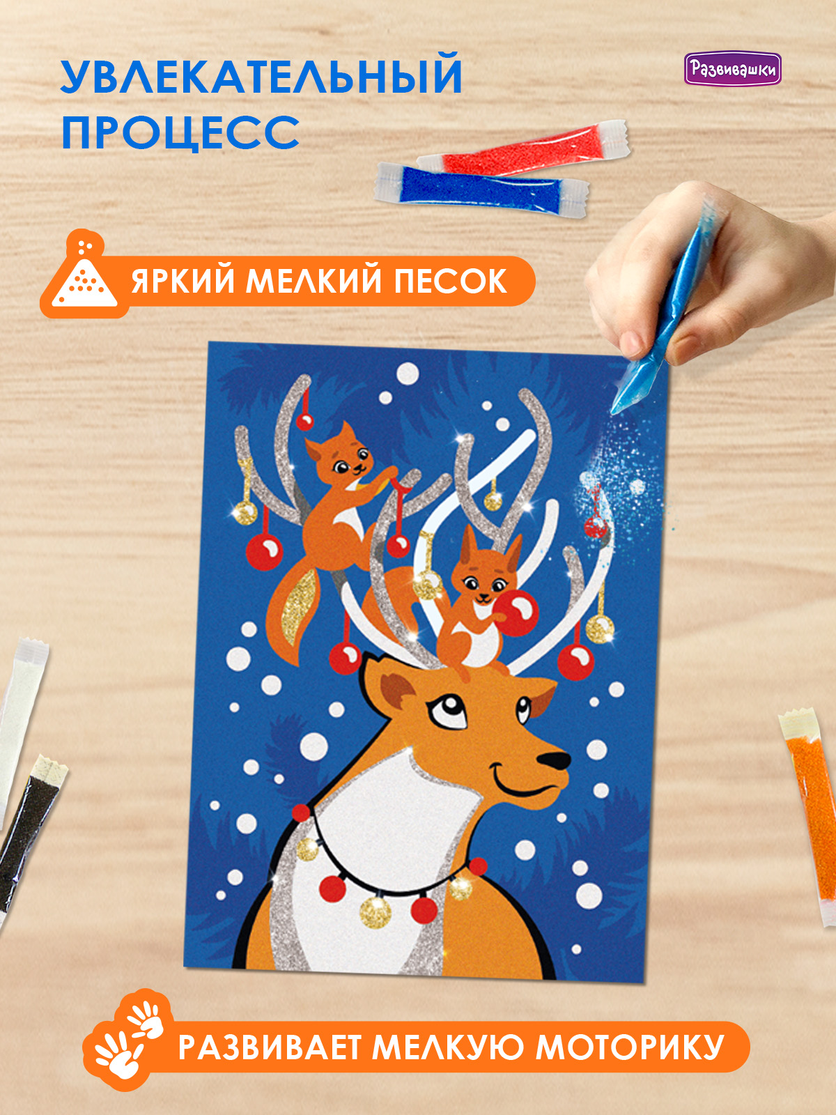 Home Фрески - роспись цветным песком Фрески большие 30х20 см С1789 Фреска из цветного песка А4 «Олень»