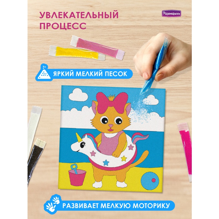 С1907 Фреска из цветного песка. Кошка на пляже, 1/26 quantity