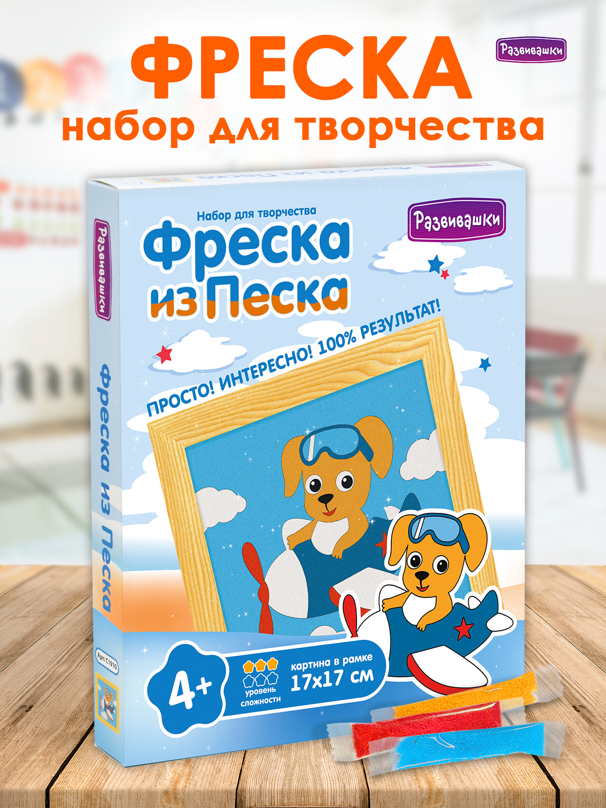 С1910 Фреска из цветного песка. Собачка на самолёте, 1/26 quantity