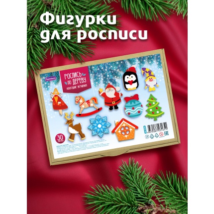 М444 Роспись по дереву Набор 30 фигурок «Украшения» + МАГНИТЫ