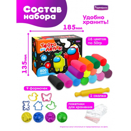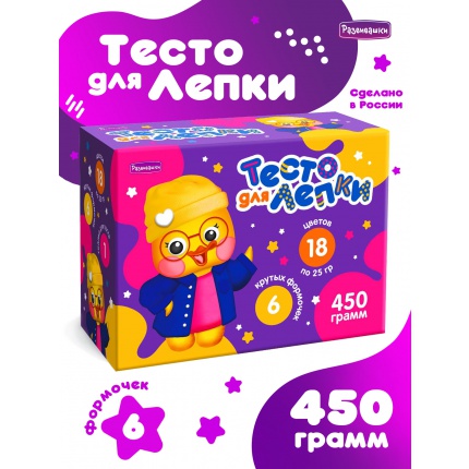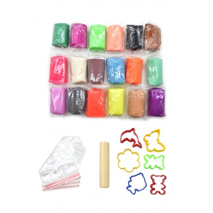 П117 Тесто для лепки, тесто 450 гр, 18 цветов, 6 форм, скалка, 1/20