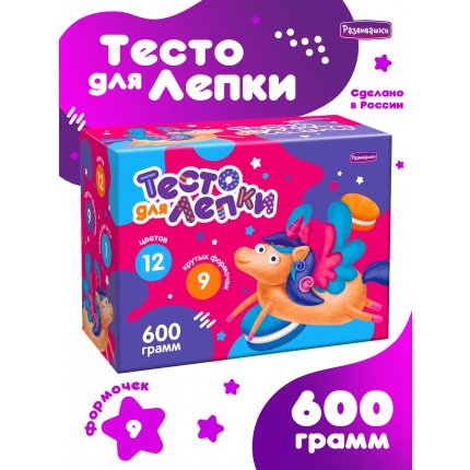 П118 Тесто для лепки в коробке, тесто 600 гр, 12 цветов, 9 форм, скалка, 1/20