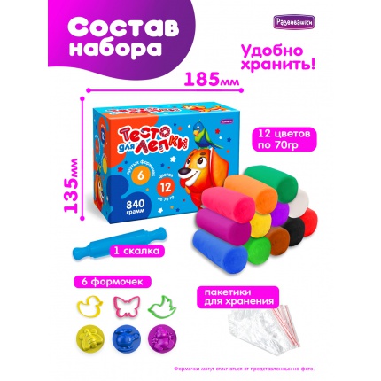 П119 Тесто для лепки в коробке, тесто 840гр, формы, скалка, 1/20